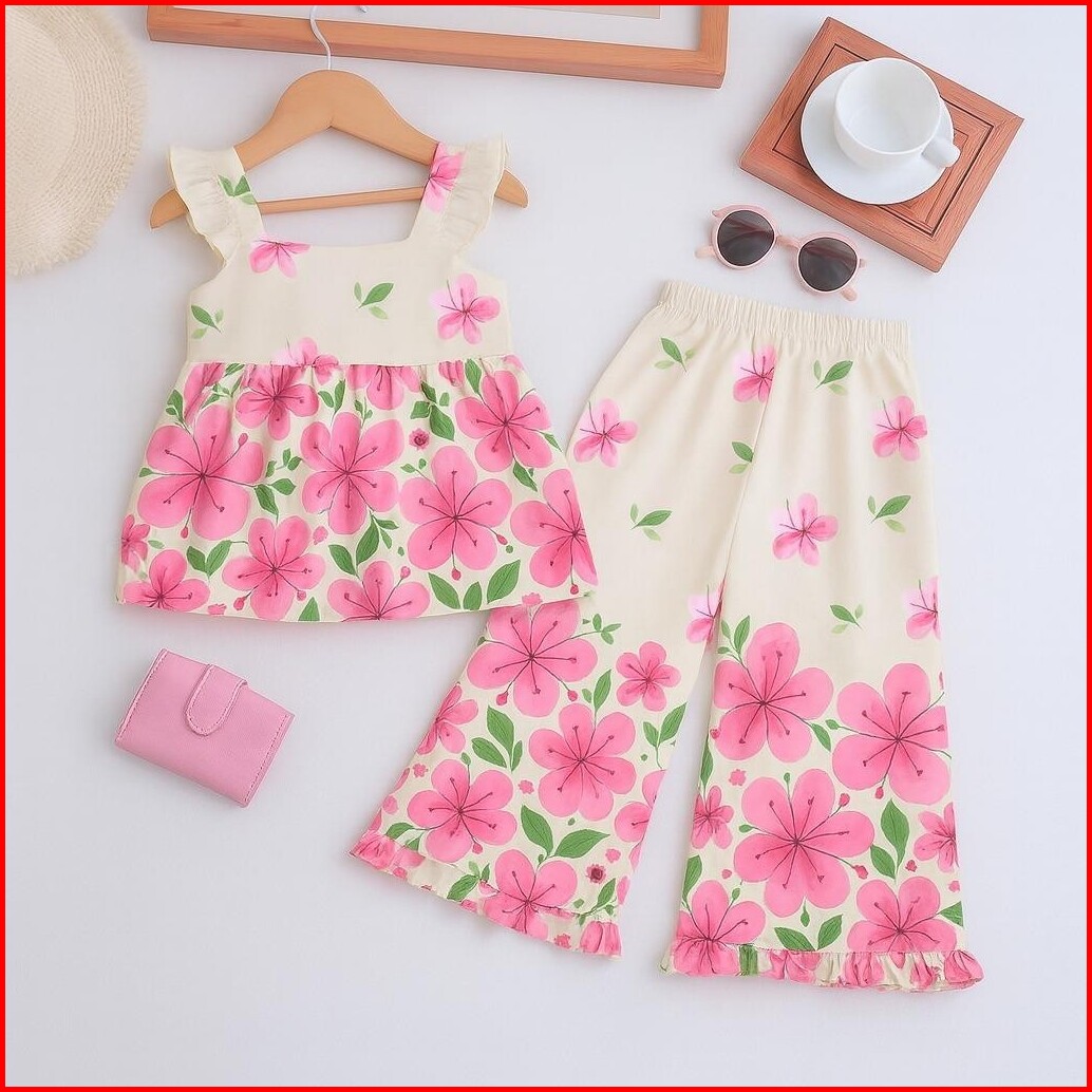 Najwa - Ready Stock Setelan Anak Seravina Motif Bunga Terlaris Fashion Oneset Anak Perempuan Atasan Model Celana 7 8 Ter