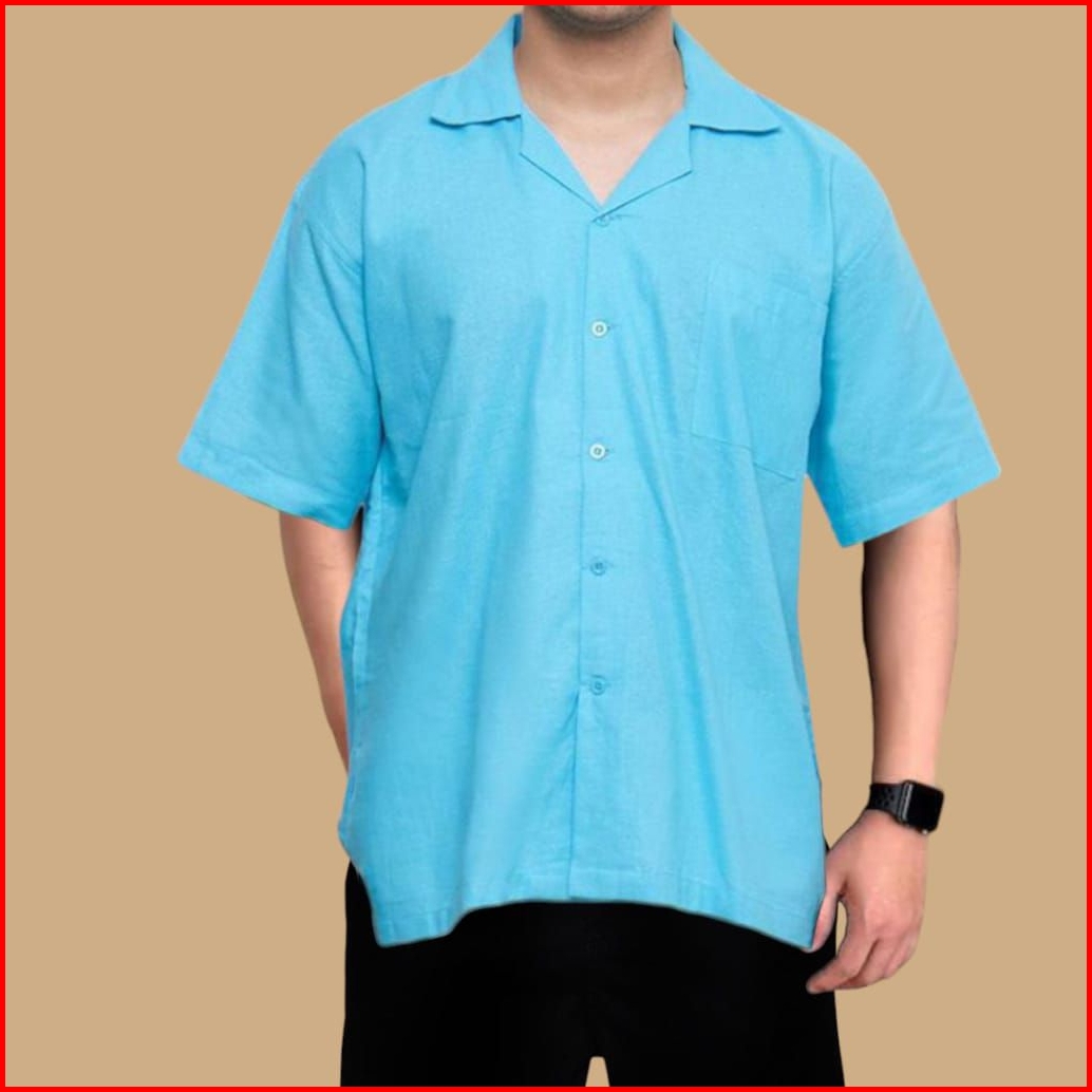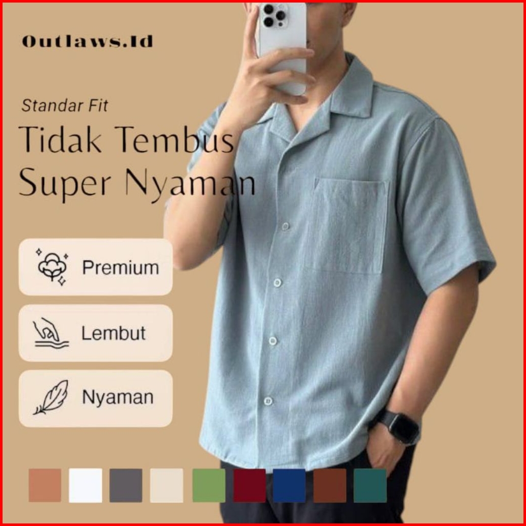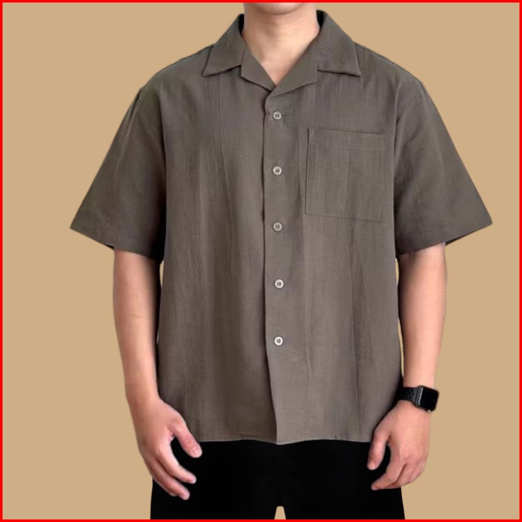 Outlaws - Cuban Bowling Boxy Oversized Linen Shirt Kemeja Linen Bowling Polos Pria Kerah Terbuka Lengan Pendek 81