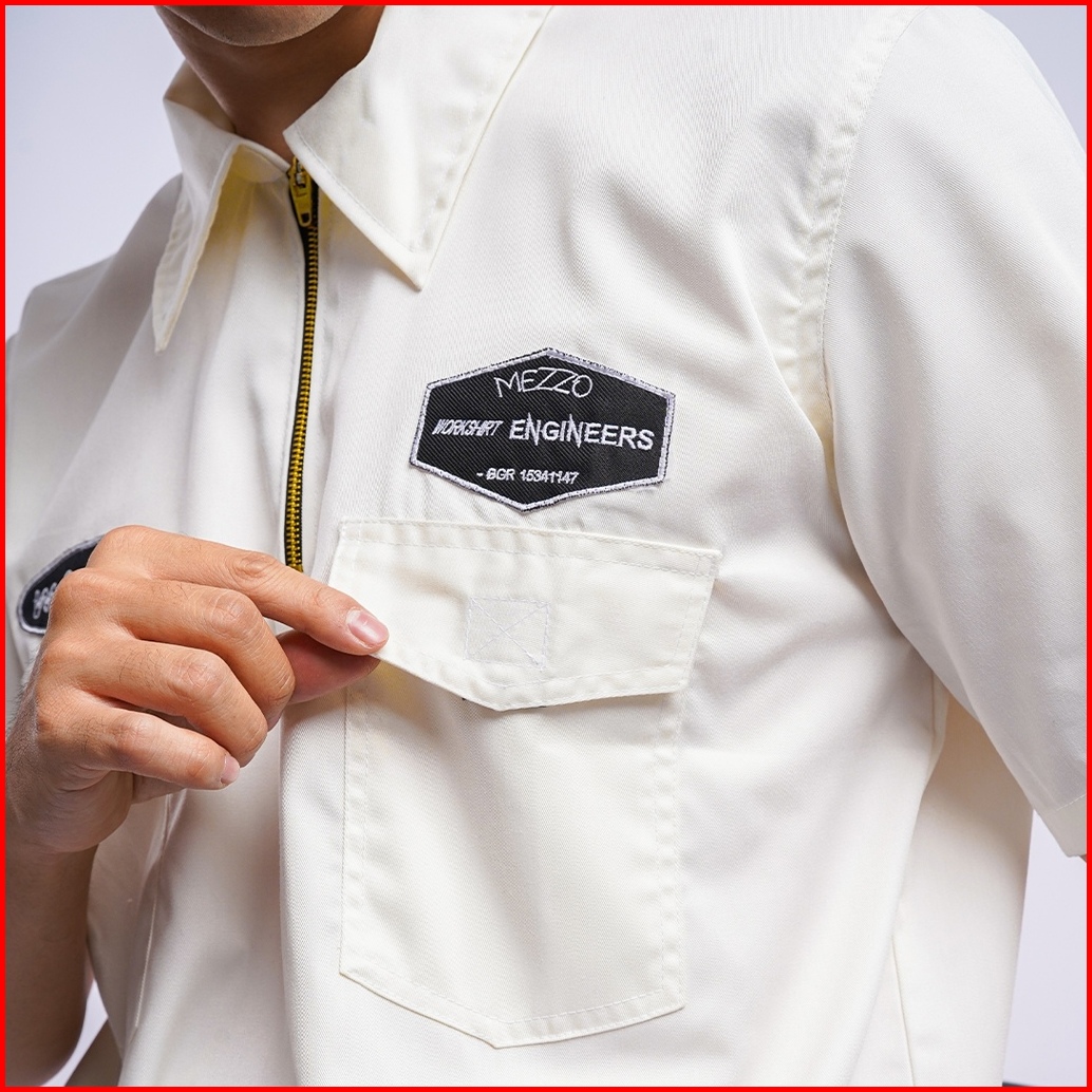 Mezzo Rise In Art Workshirt Zipper Halfy Body Engineers Putih