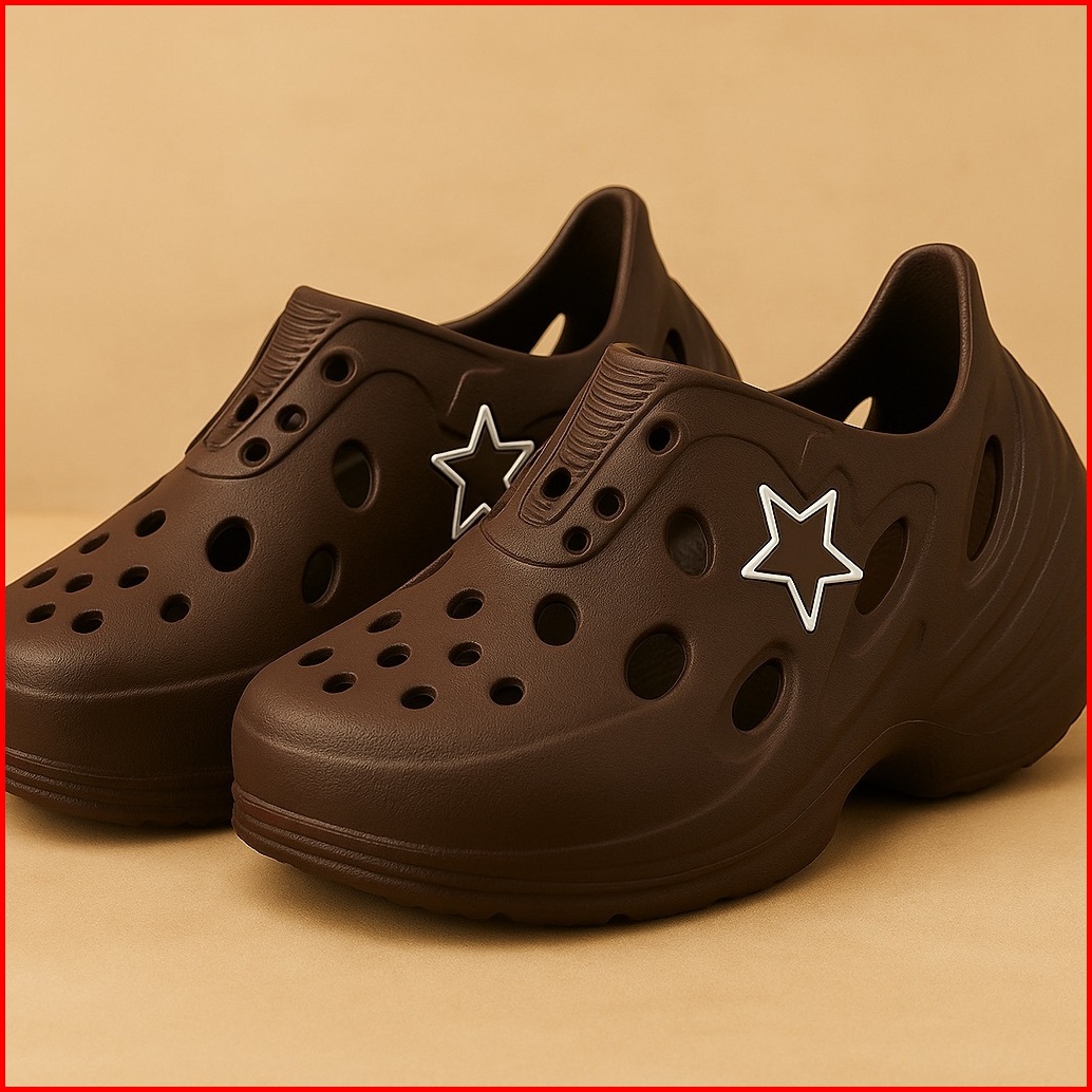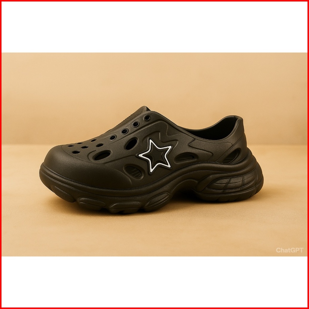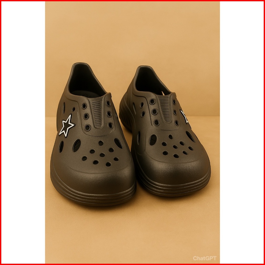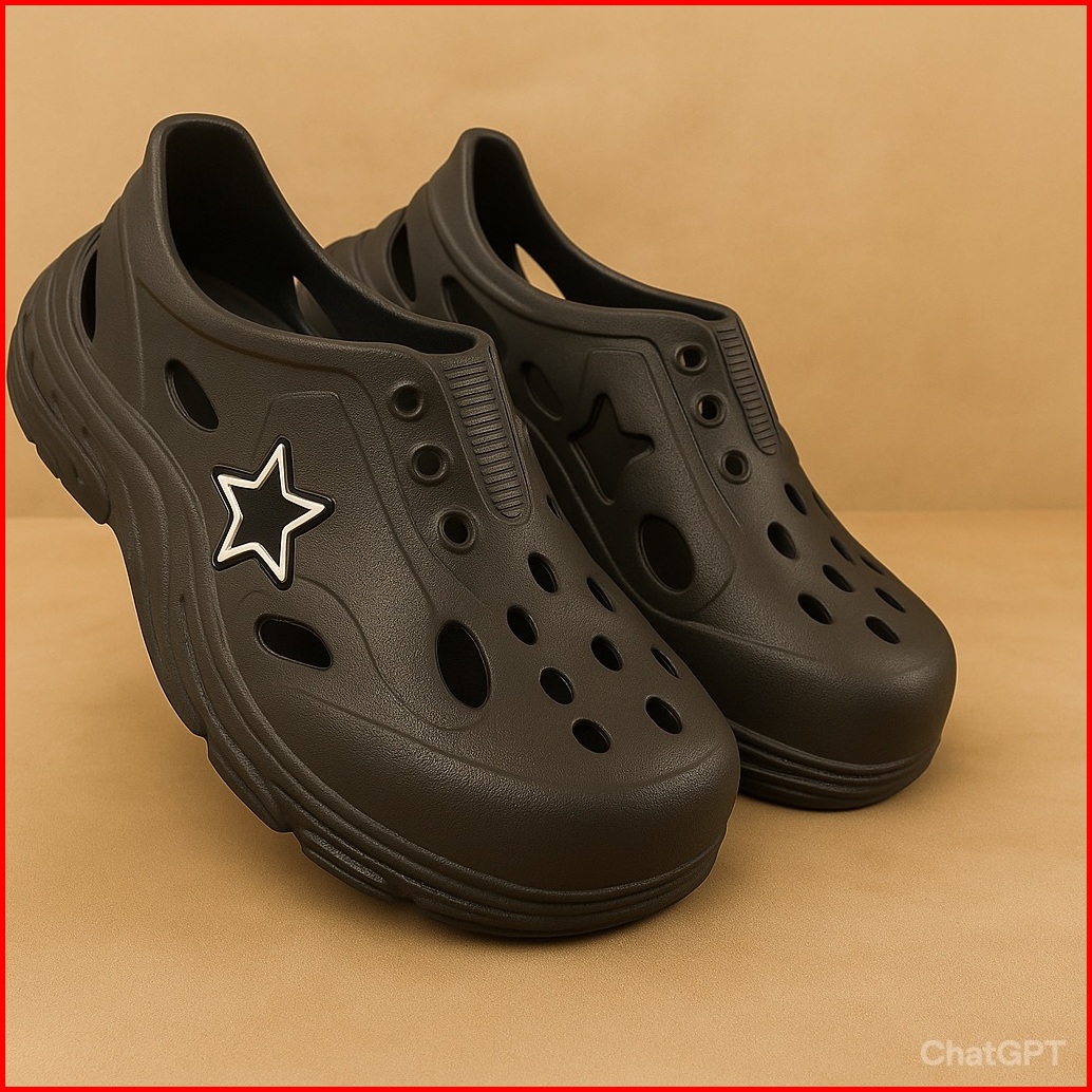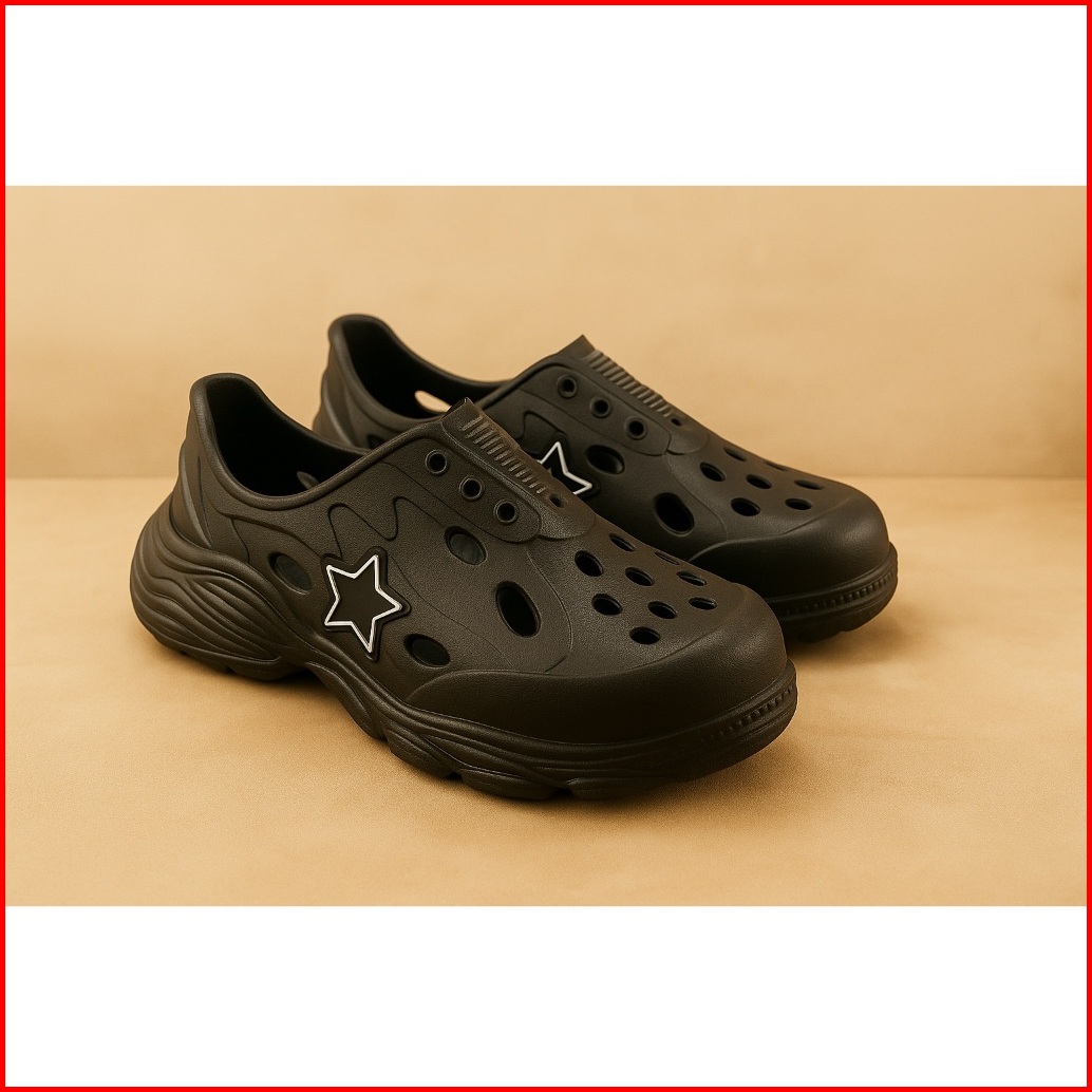 Hengrun Sepatu Sandal Pria Clog Trend Eva Empuk Grip Kuat Cocok Jalan Hujan Kerja-8048 Warna Black Clam Beige Anti Selip