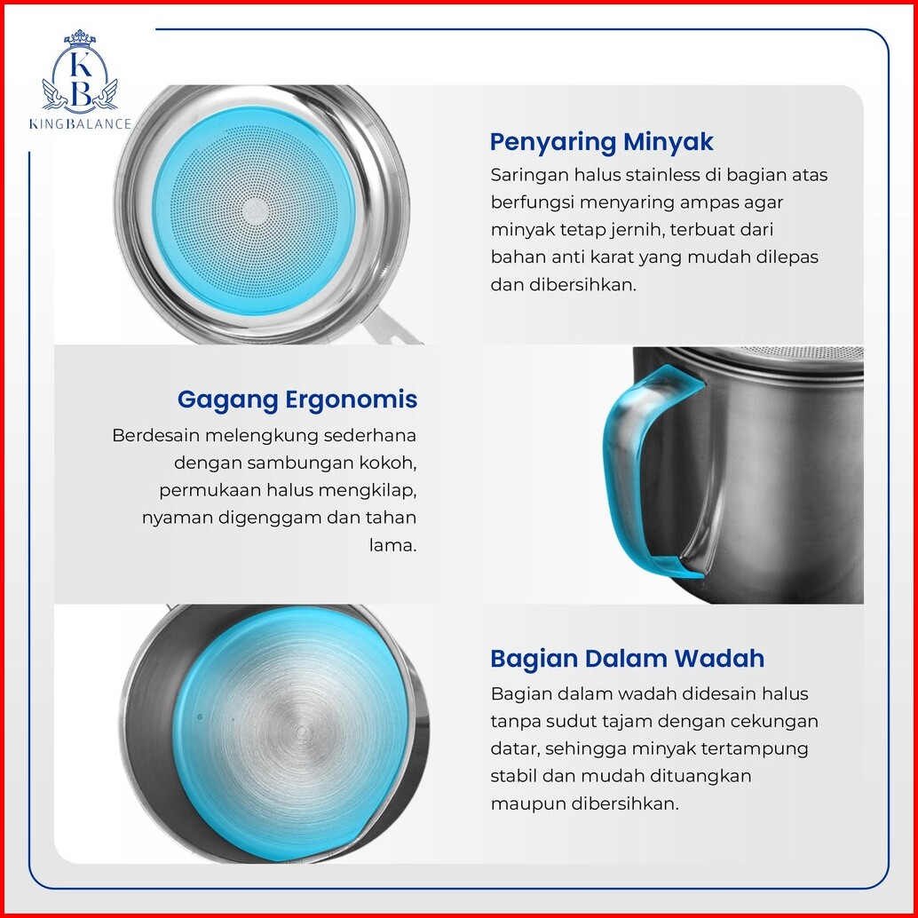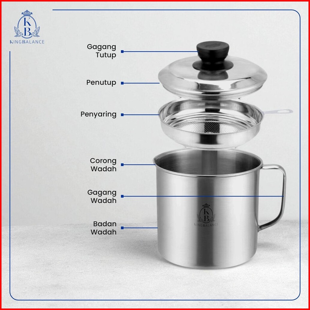 King Balance Wadah Penyaring Minyak Oil Pot 513 Stainless Steel Sus 304 12 Cm Bpa Free 1300 Ml 500 G