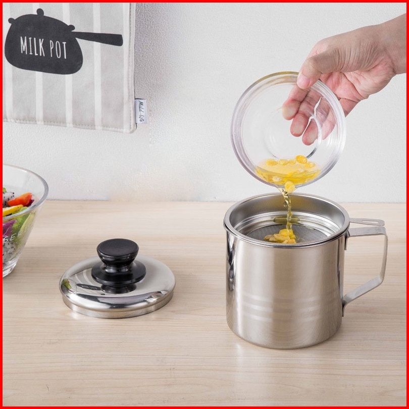 Pusat Batam Grosir - H957 Wadah Saringan Minyak Goreng Stainless Steel Oil Pot Tempat Saringan Minyak