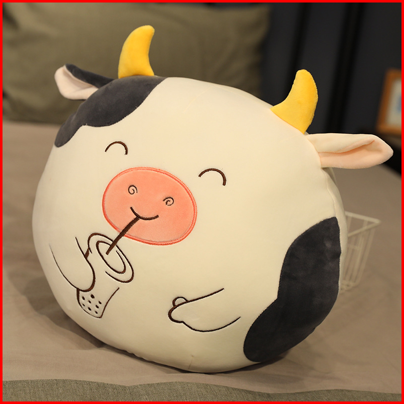 Bantal Tidur Sofa Lucu Karakter Sapi Cow Moo Plush Pillow Dolls Bahan Halus Lembut Ukuran 30cm