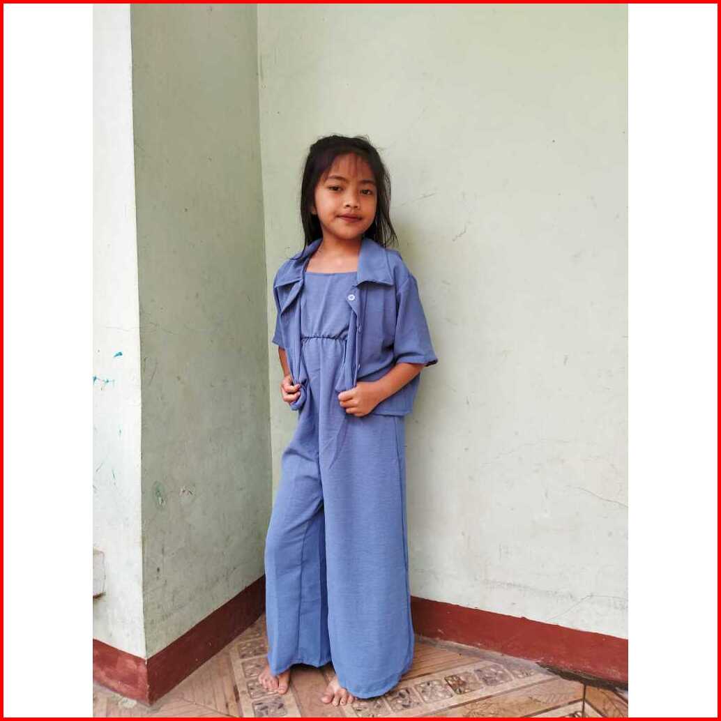 Set Jumpsuit Baju Anak Perempuan Simpel Ala Korea Kekinian 6-12 Tahun