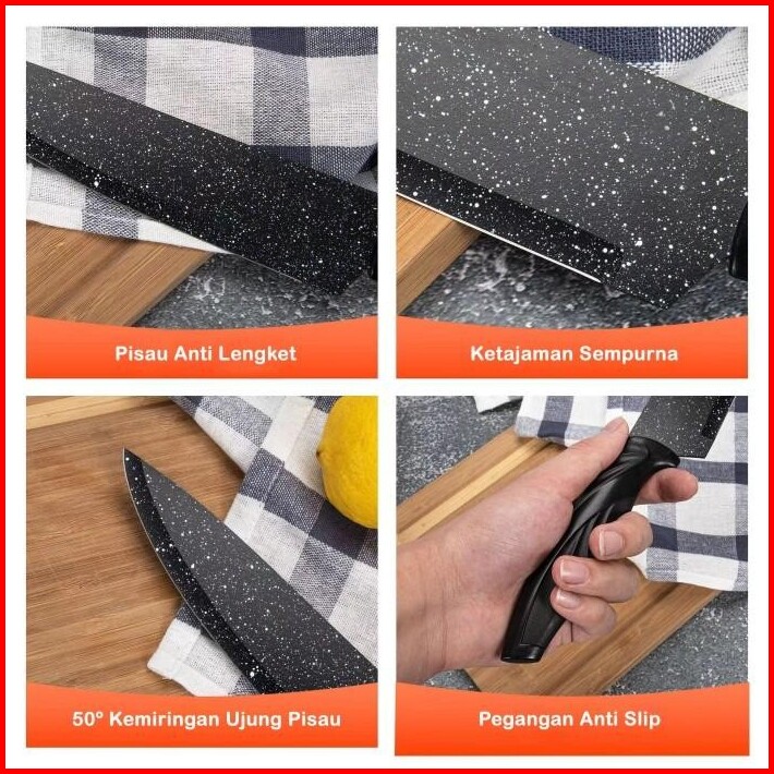 Penthouse Pisau Set 6in1 Keramik Knife Set Marble Coating Pemotong Sayur Buah