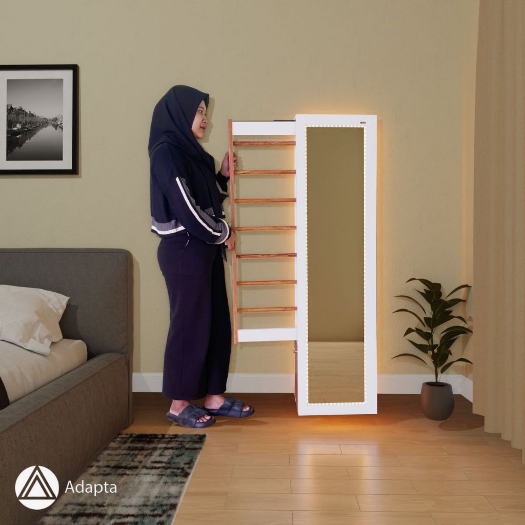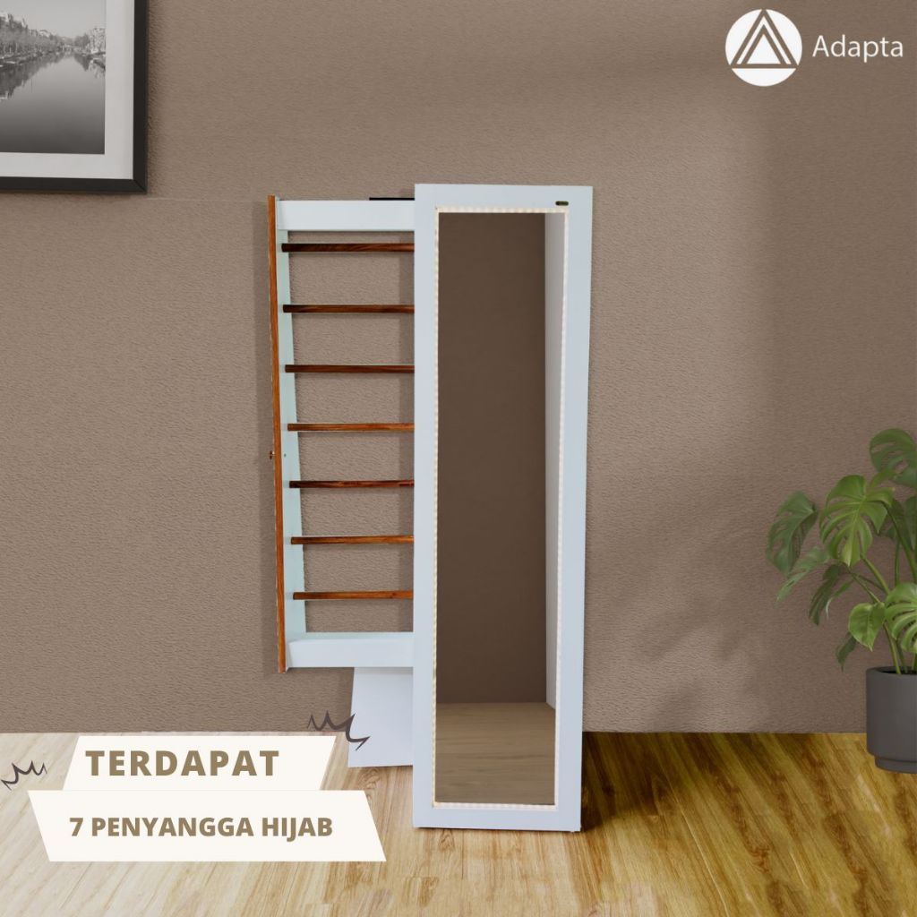Standing Mirror Full Body dengan Storage Hijab - Cermin Berdiri Rak Hijab + LED - MIRA - A1 cermin full body lampu