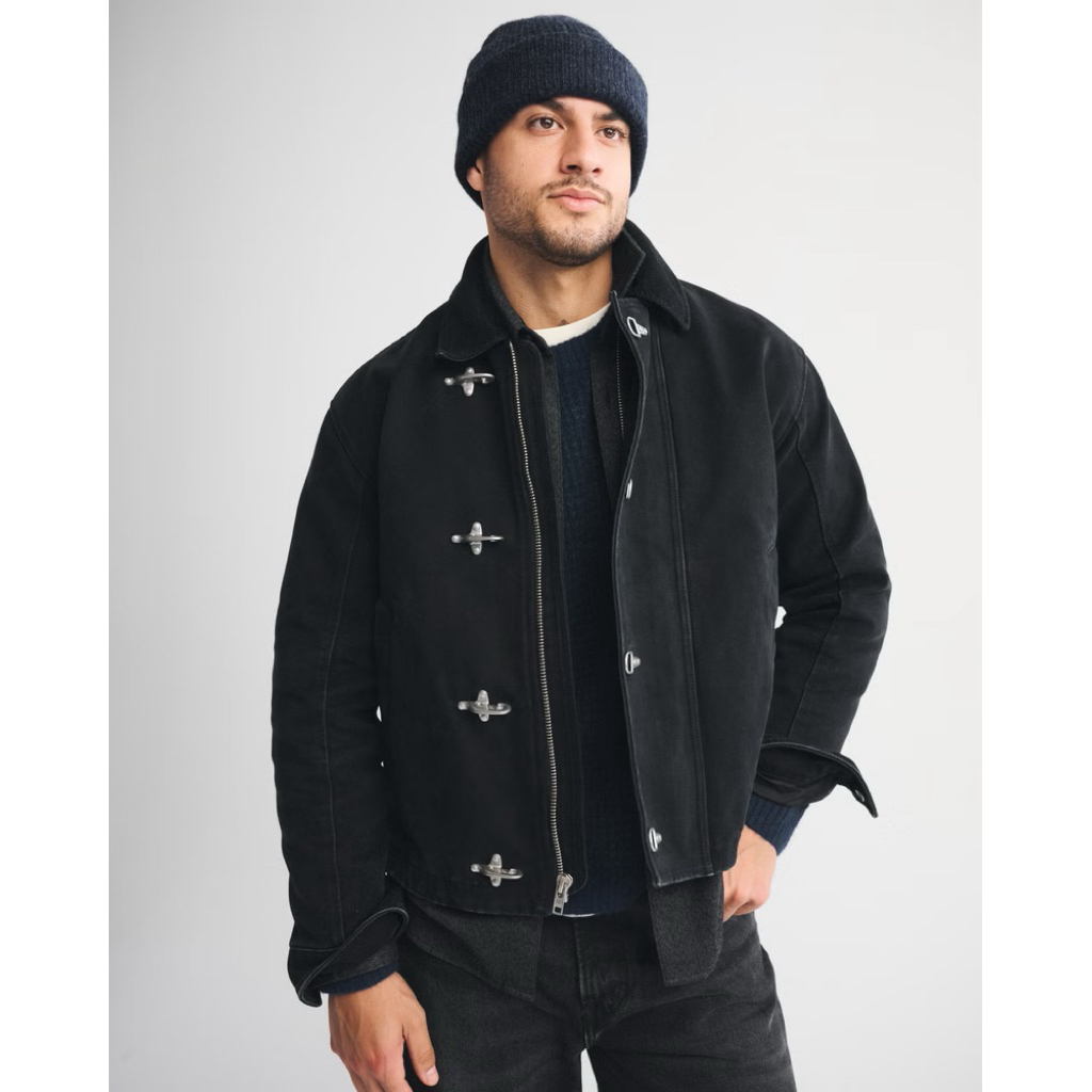 Sai - Amigo Fireman Clasps Style Work Jackets Canvas Boxy Outer Jacket Canvas