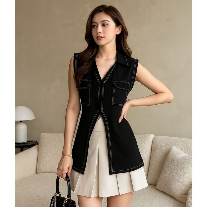 Rara Blouse Atasan Wanita Tanpa Lengan Matt Katun Linen Premium Fit To L Besar
