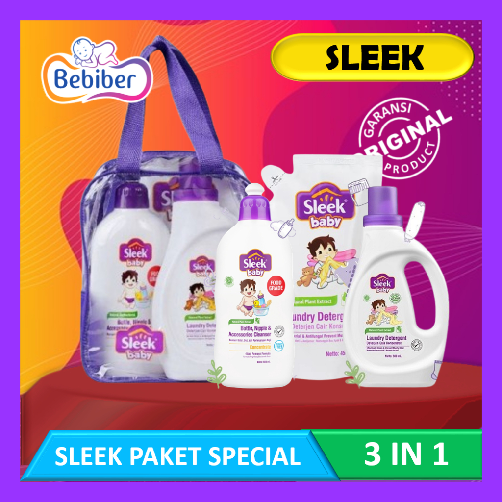Sleek Special Paket 3in1 - Laundry Detergent - Cleanser - Sabun Cuci Botol & Baju Bayi - Bebiber