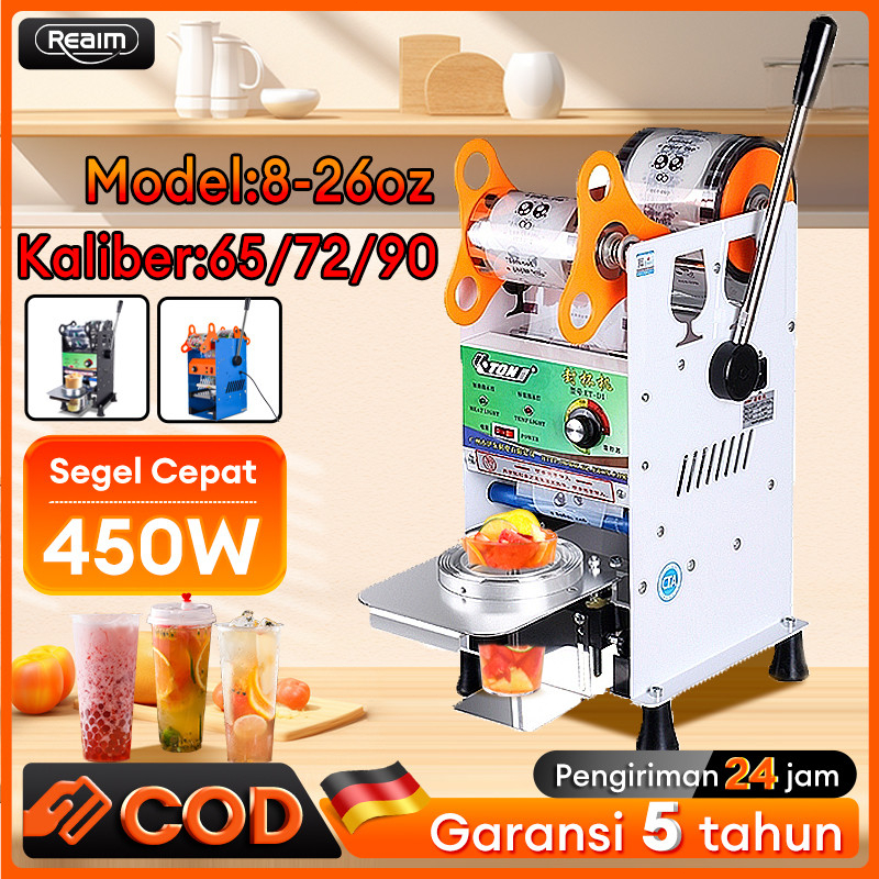 REAIM Mesin Press Cup Gelas Plastik 8-26 Oz Cup Sealer Original Alat Sealing Minuman Cepat & Praktis