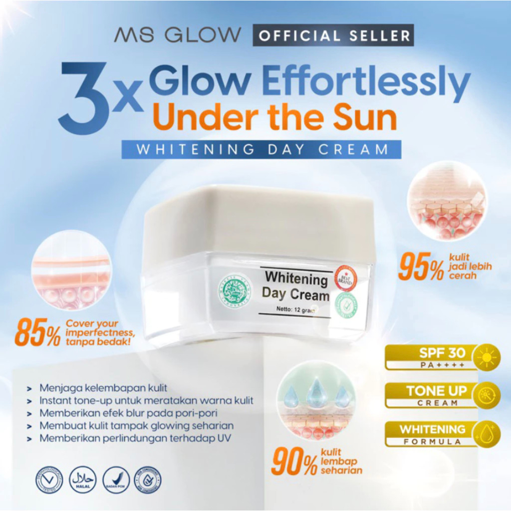 MS GLOW DAY CREAM DAN NIGHT CREAM WHITENING ACNE LUMINOUS ULTIMATE WHITECELL DNA KRIM WAJAH