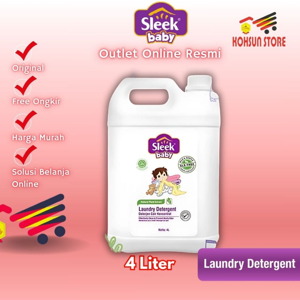 Sleek Deterjent Baju Bayi / Laundry Detergen Cair Jerigen 4 Liter 4l