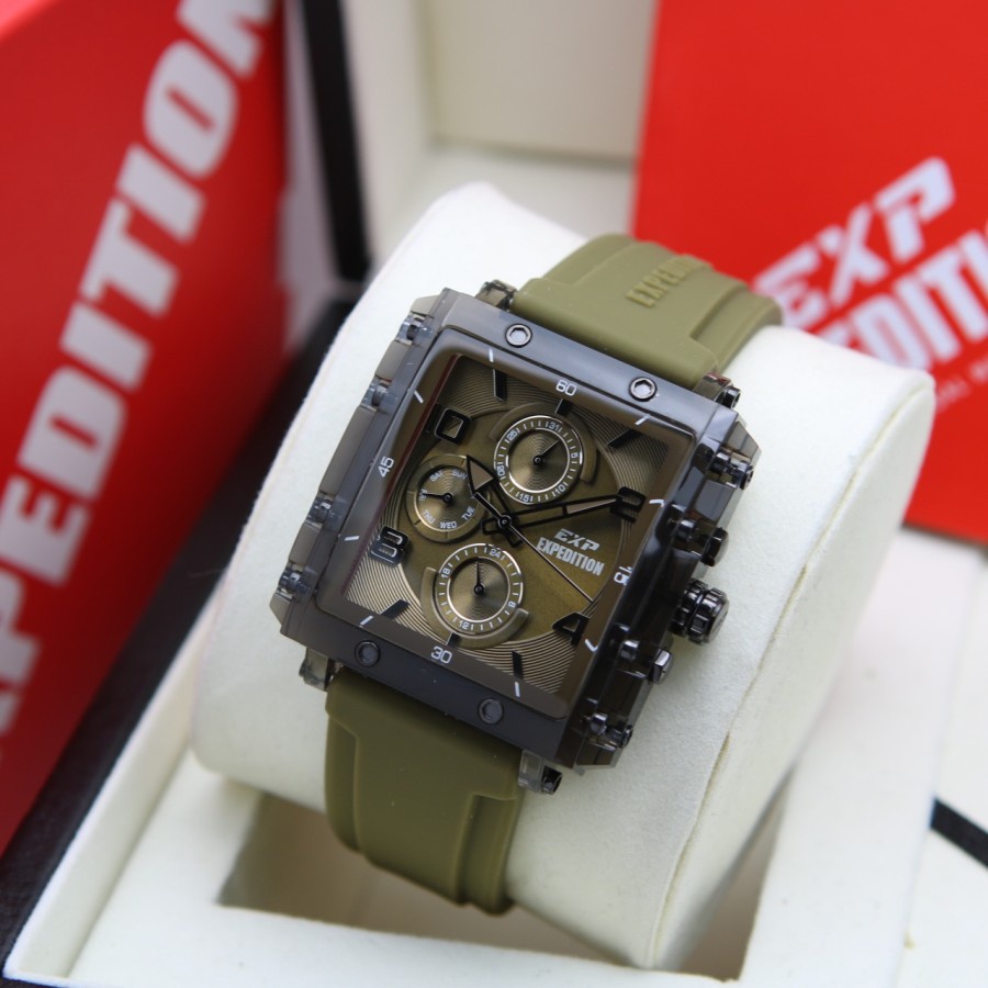 Jam Tangan Wanita Expedition E 6808 / E6808 Black Green Army Rubber Original