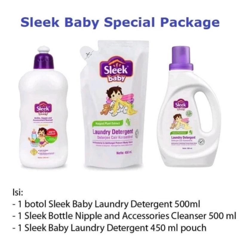 SLEEK BABY SPECIAL PACKAGE- [Laundry Detergent Cair Konsentrat 500ml 500 ml, Laundry Detergent Cair Konsentrat 450ml 450