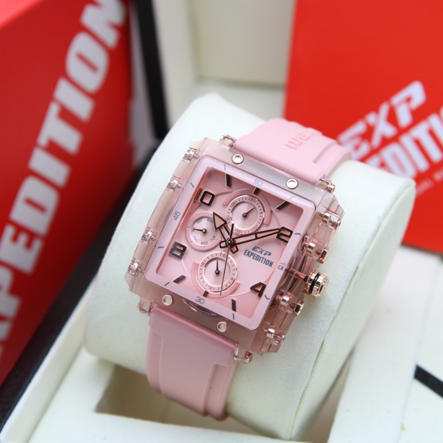 Jam Tangan Wanita Expedition E 6808 / E6808 Full Pink Rubber Original Resmi 1