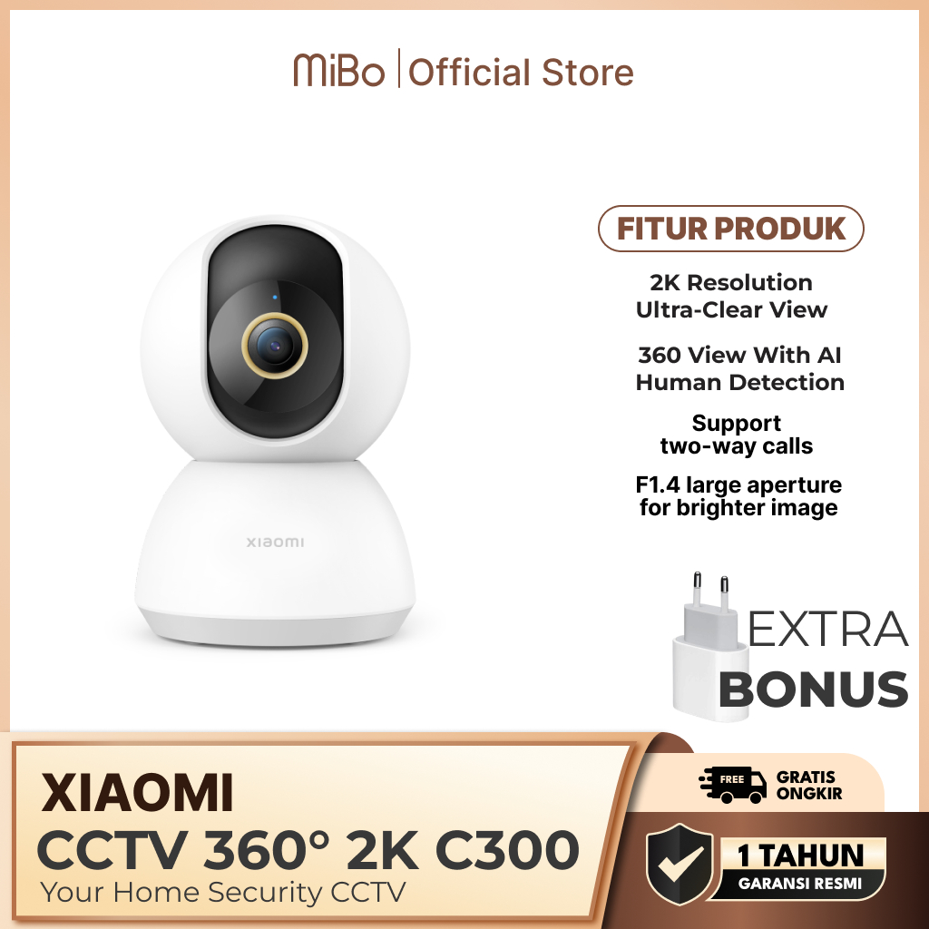 Xiaomi Mi 360° Home Security Camera 2K C300 CCTV Smart Camera C300 2K Ultra-clear HD 3MP F1.4 AI Human Detection Garansi