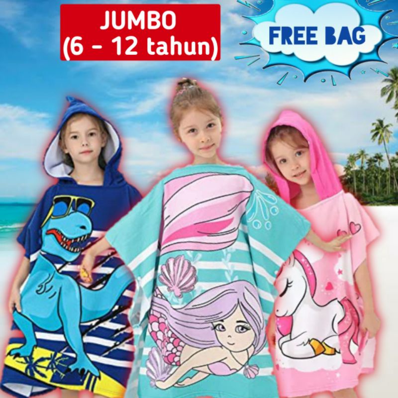 HANDUK PONCO JUMBO ANAK USIA 6, 7, 8, 9, 10, 11, 12, 13 TAHUN, HANDUK RENANG, HOODIE KARAKTER SIZE BESAR REMAJA