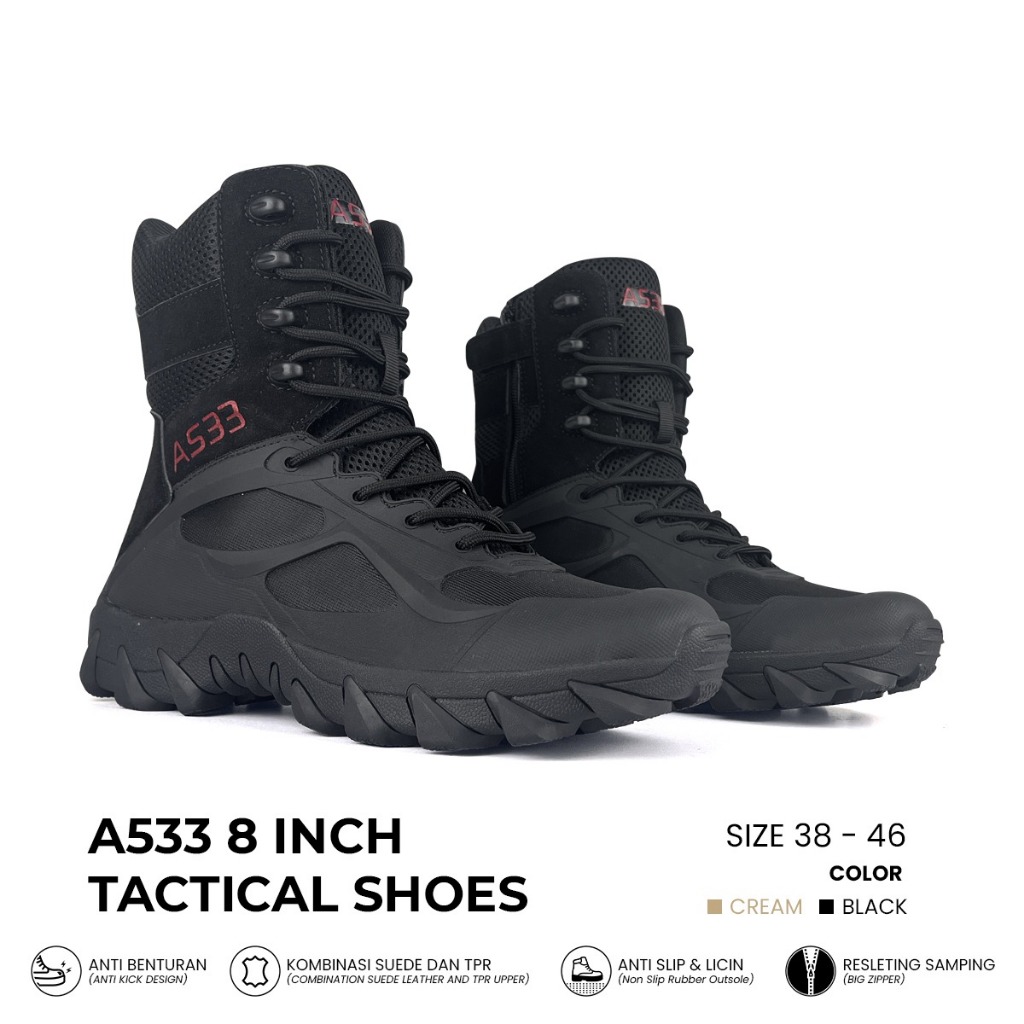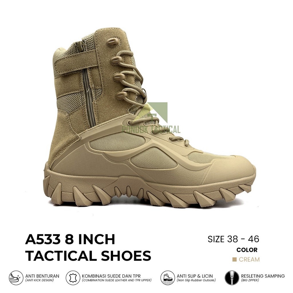 Sepatu Tactical A533 8 Inch Gurun Kanvas Kulit Sepatu Boots Lapangan Sepatu Kerja Sepatu Pdl