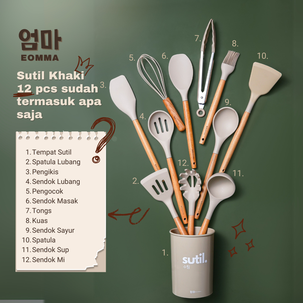 SOETIL Sutil Set 12pcs + Wadah Spatula Silikon Tahan Panas Sendok Masak Centong Sup Capitan