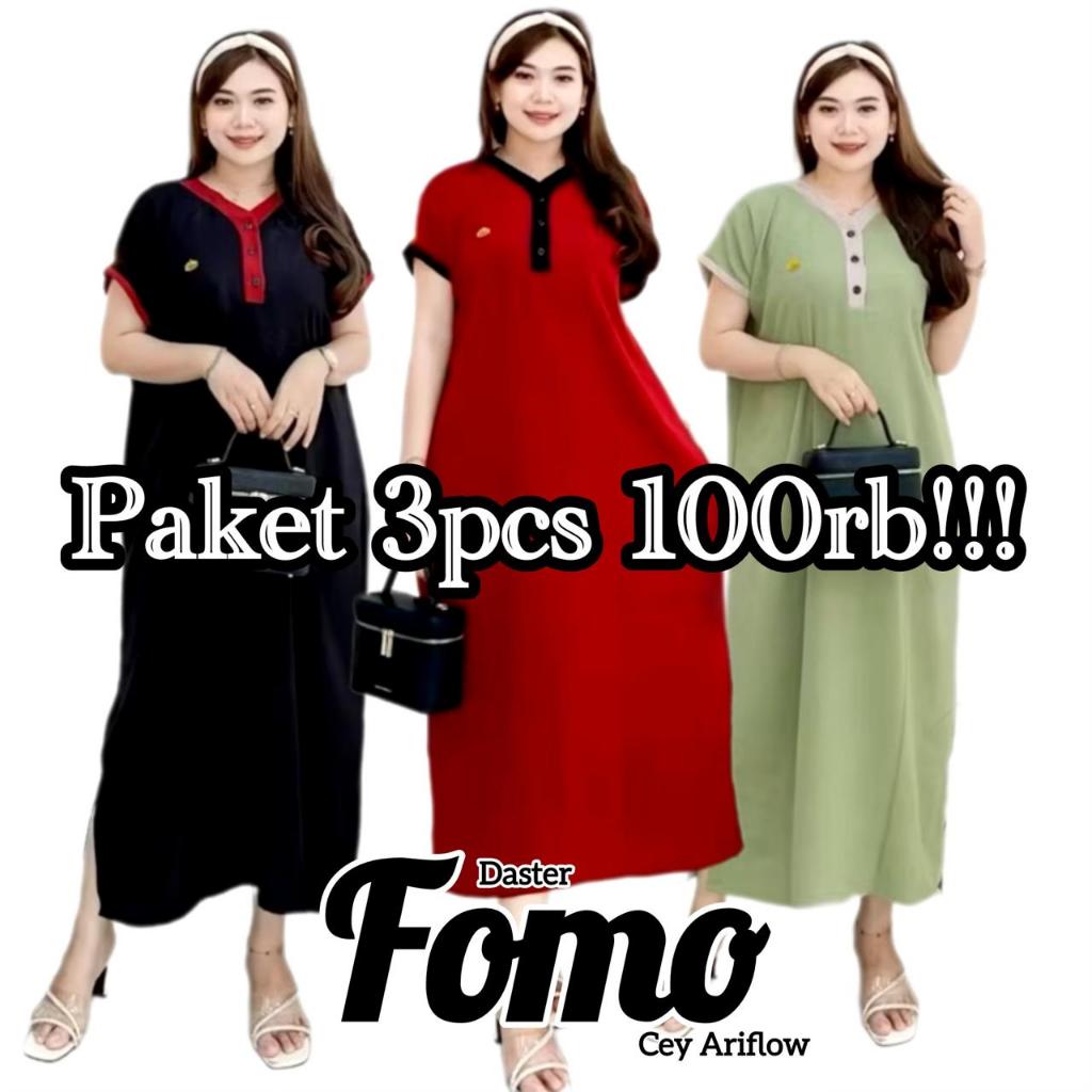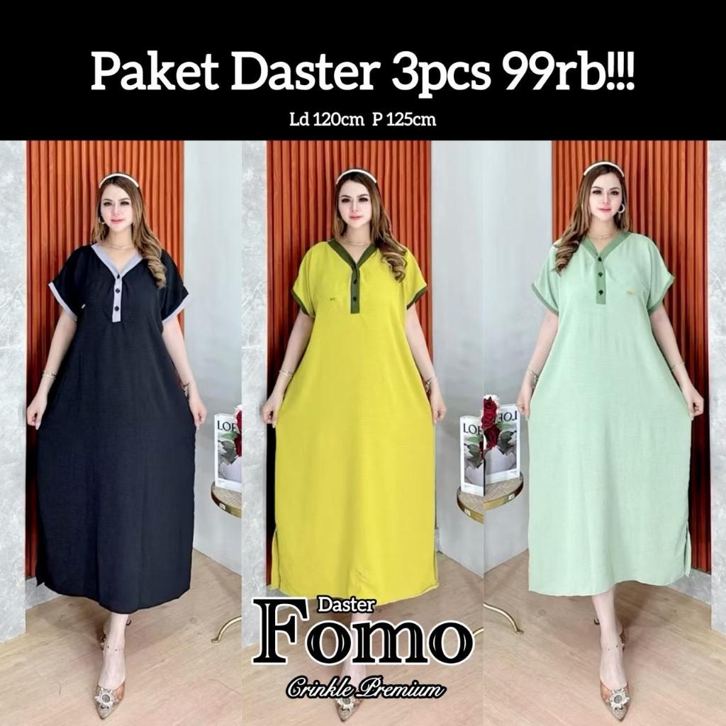 Paket ( 3pcs 100rb ) DASTER FOMO KANCING Ld 120cm Pj 125cm Lenagan Pendek Daster Piyama Crinkle Airflow Dress Tidur Busu