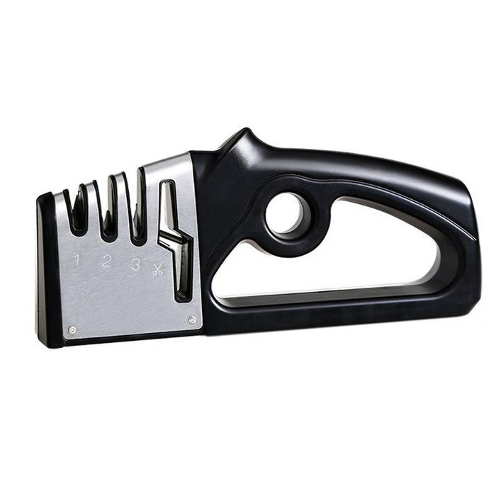 Alat Pengasah Pisau 3in1 knife sharpener pengasah gunting penajam pisau Hitam Serbaguna Peralatan Dapur - Hitam-1