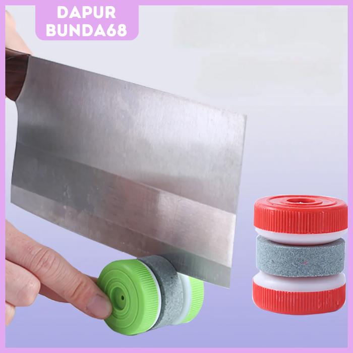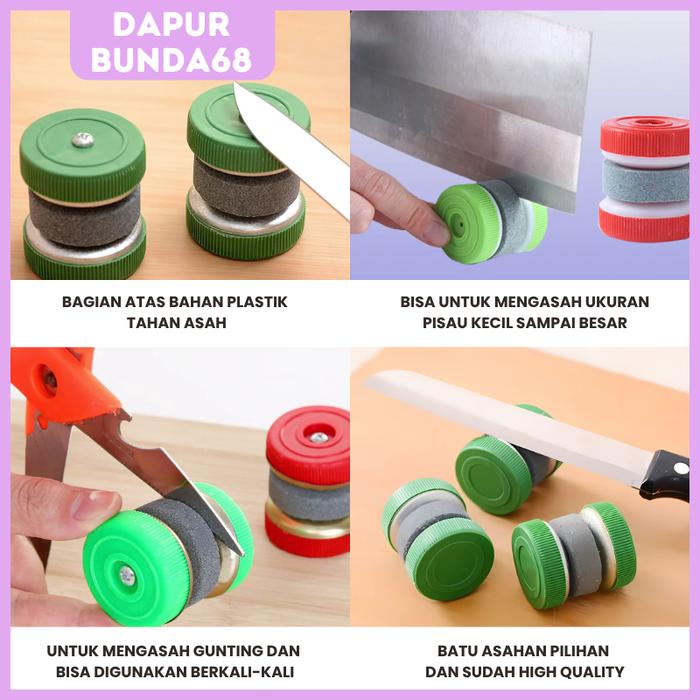 DB68 Alat Pengasah Asah Penajam Pisau Roda Bulat Putar Asah Pisau Gunting Knife Sharpener Batu Merah Plastik