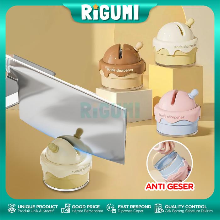 Alat Pengasah Pisau & Gunting Dapur Imut Mini Portable Anti Slip Knife Sharpener Multifungsi - Pink