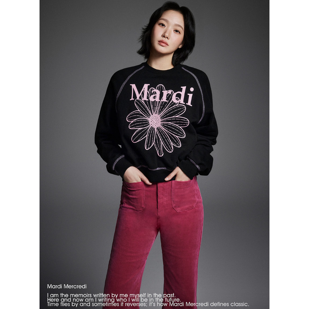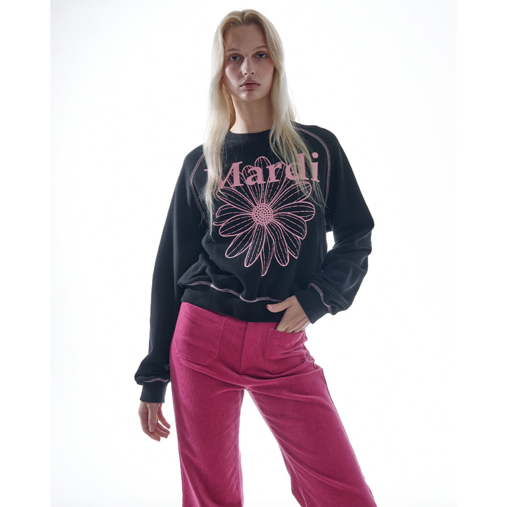 [Ready Stock] Mardi Mercredi Flowermardi Black Pink Raglan Sweatshirt - 100 PERSEN Original Korea