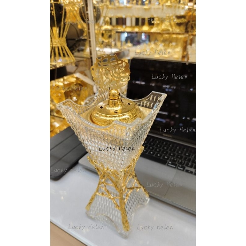 【LUCKY HELEN】Tempat Bakar Dupa Bukhur Logam Kaca Arab Saudi/ Bukhur Tempat Bakar Dupa