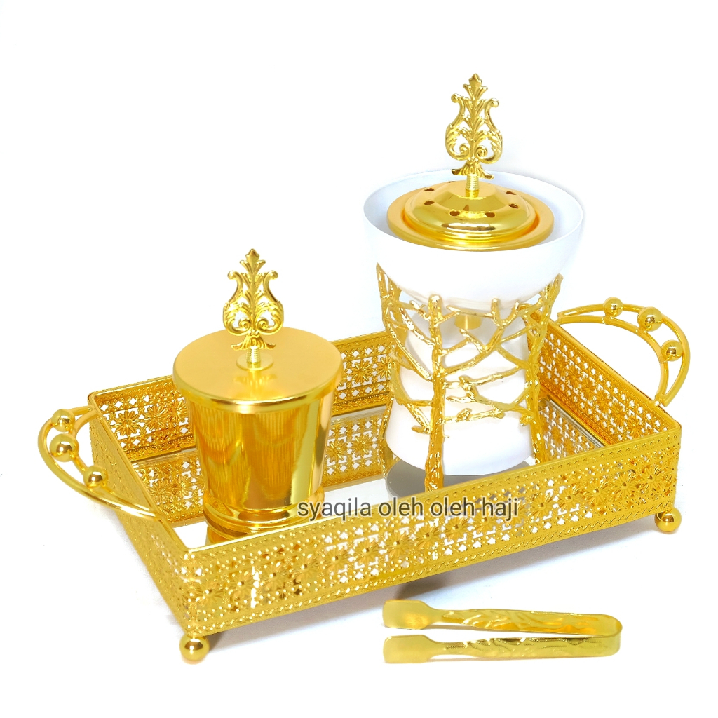 Set Tempat Bukhur Mabkhara Buhur Prapen Dupa Mabkharah Gold Nampan Gold Kaca Capitan