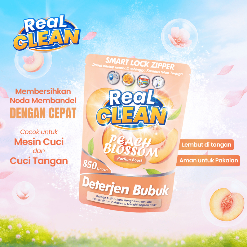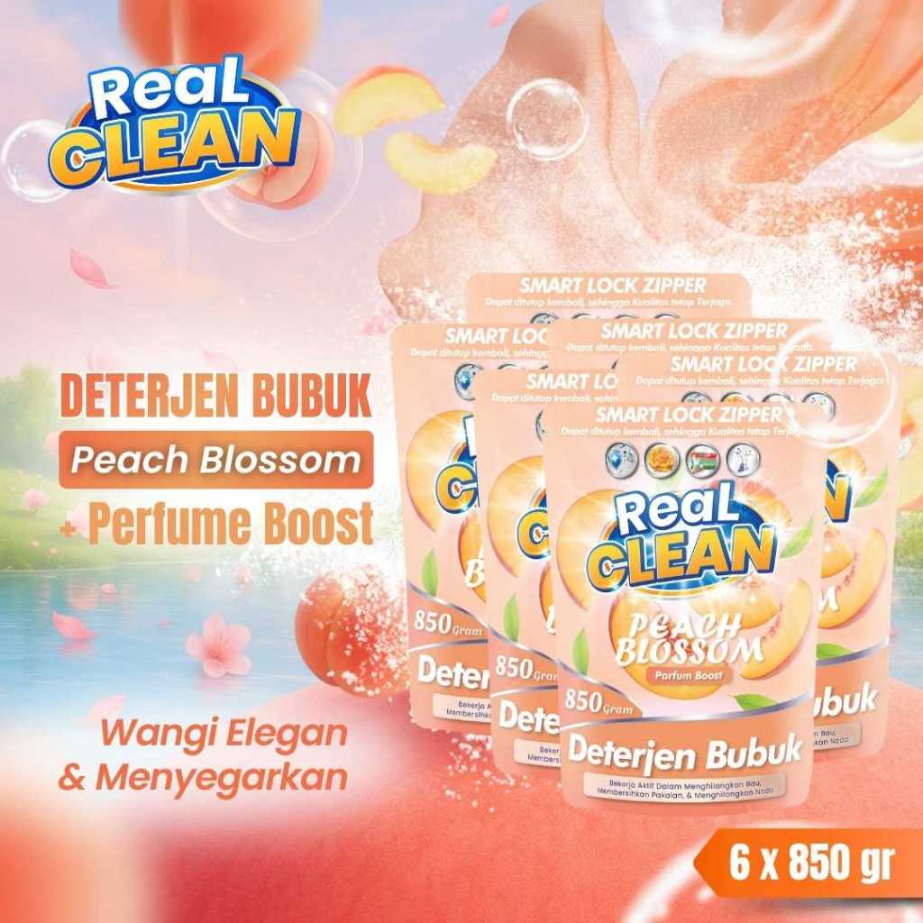 Paket Real Clean Deterjen Bubuk Perfume Boost Peach Blossom 850g x 6 PCS