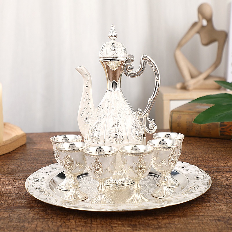 8PCS Teko Arab Aladin Set Gold Warna Emas Ornament Dengan Nampan Home Decoration