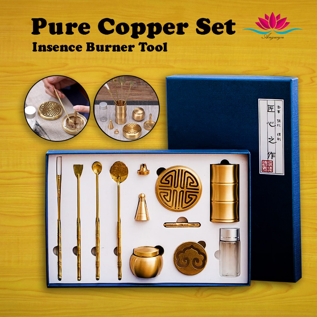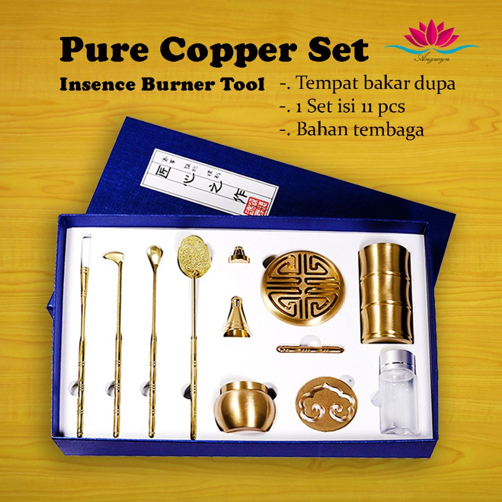 Tempat Bakar Dupa Aromaterapi Premium Set isi 11 pcs Bahan Tembaga Asli