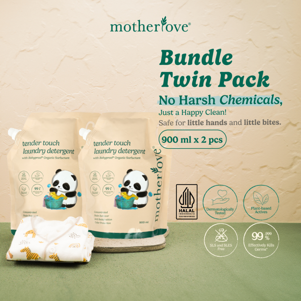 TWIN PACK - Motherlove Tender Touch Laundry Detergent 900 ml - Detergent Pencuci Baju Organik untuk Anak dan Bayi - Tanp