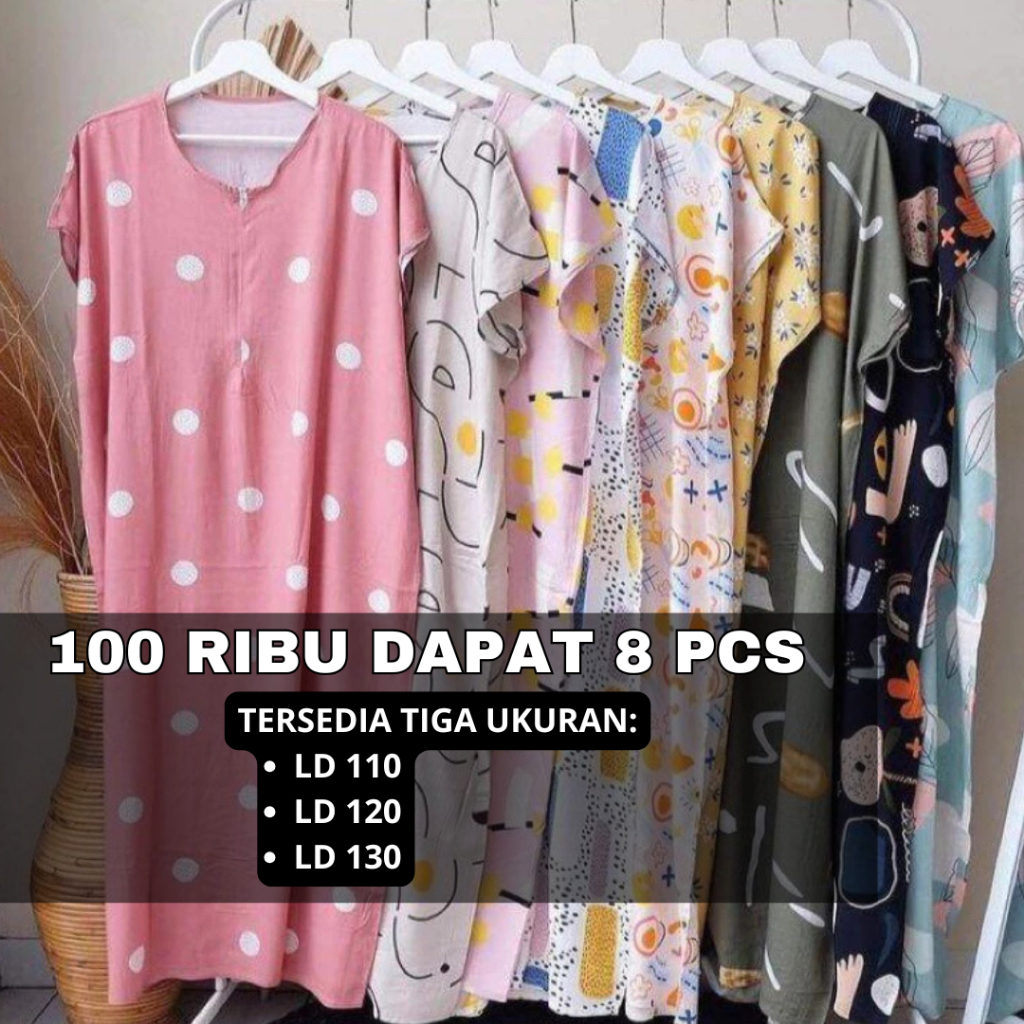 100 Ribu Dapat 8 Pcs Daster Kekinian Terbaru Wanita / Daster Midi Standar Jumbo Piyama Baju Tidur Wanita Bali / Daster F