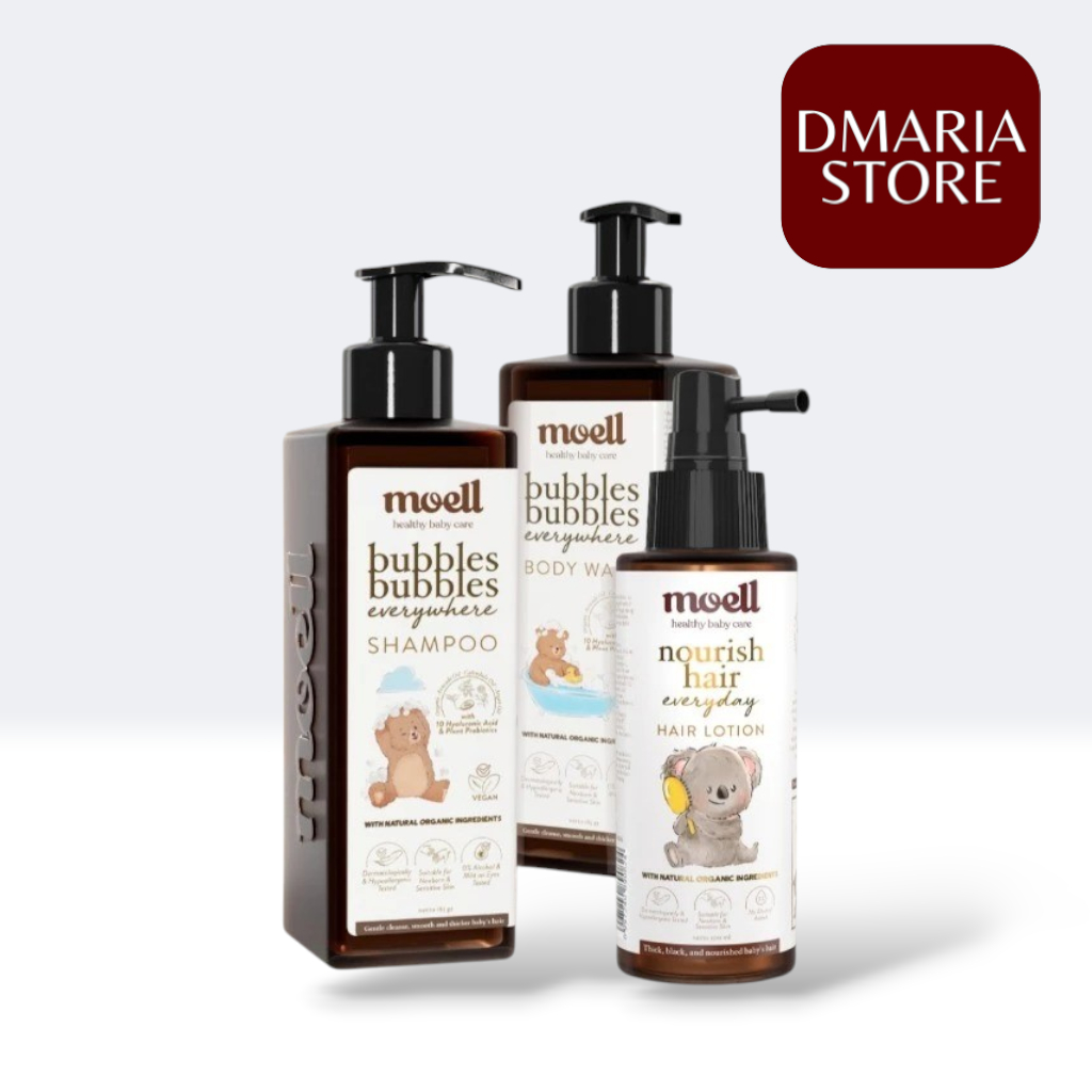 Moell Starter Kit - Hair Lotion 100ml & Body Wash 185gr & Shampoo 185gr - Perawatan Mandi Bayi