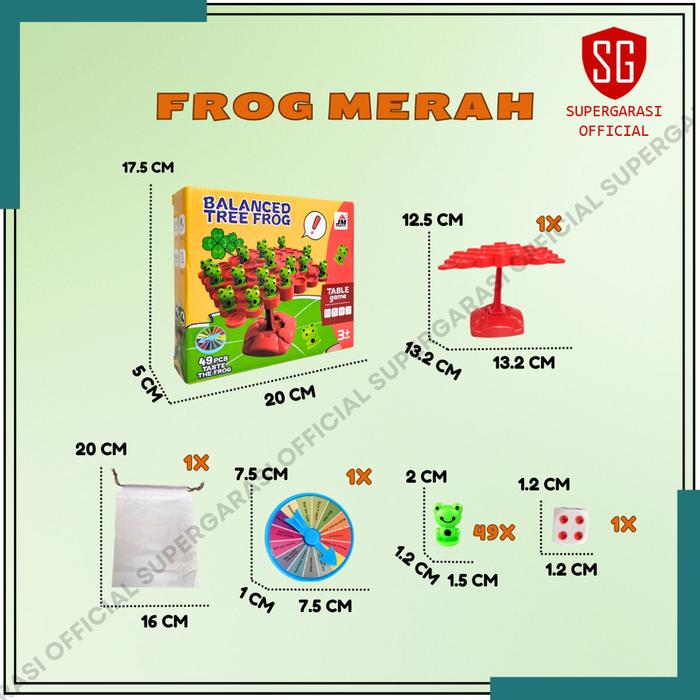 Balance tree frog panda astronot rabbit mainan keseimbangan edukasi anak - Frog (Red) - Frog (Green)