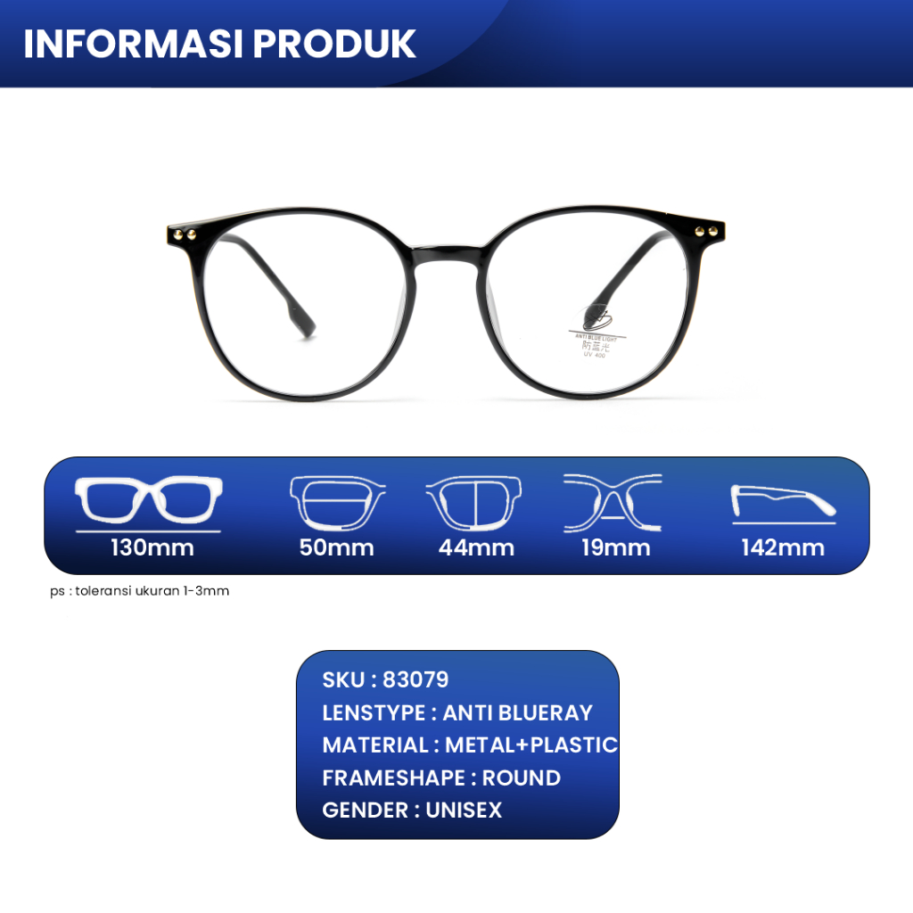 IOOI Eyewear - Kacamata Round TR 90 Lensa Minus Anti Radiasi kacamata minus photocromic pria wanita original