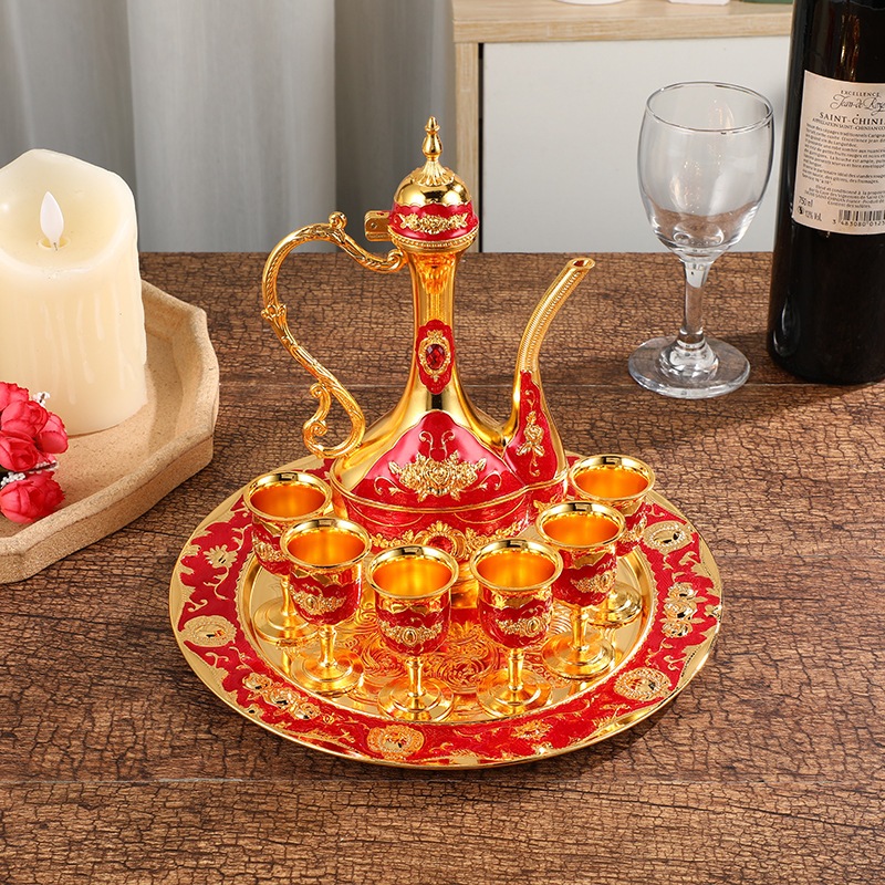 8Pcs Teko Arab Aladin Set Gold Warna Emas Ornament/set Gelas Anggur Kendi