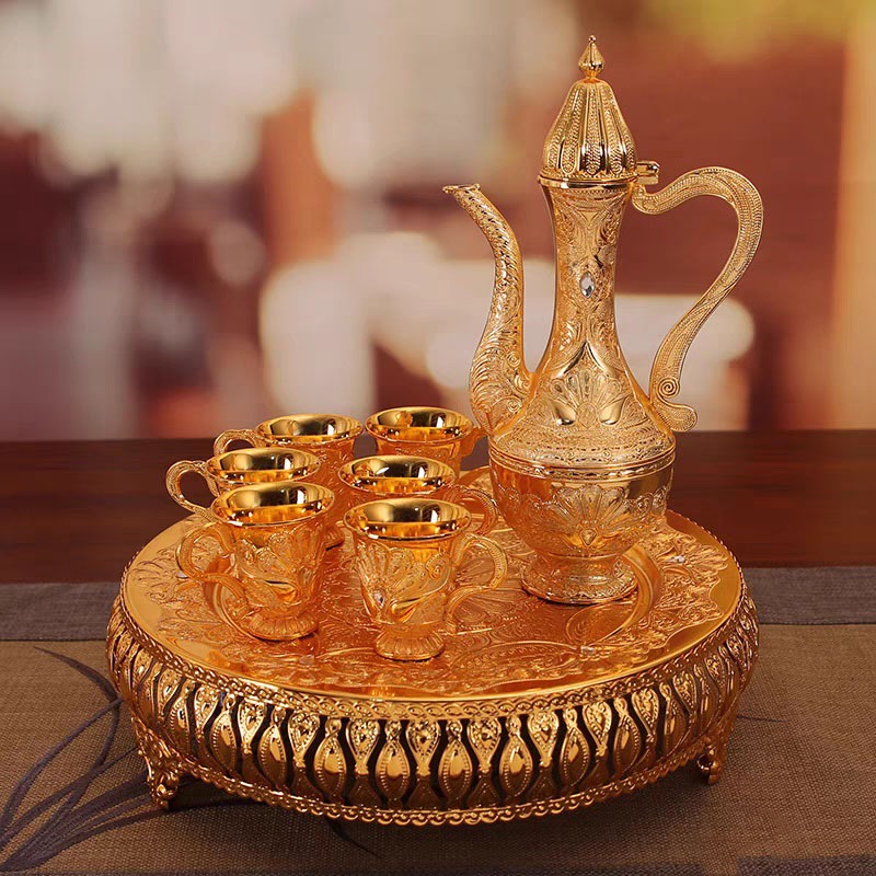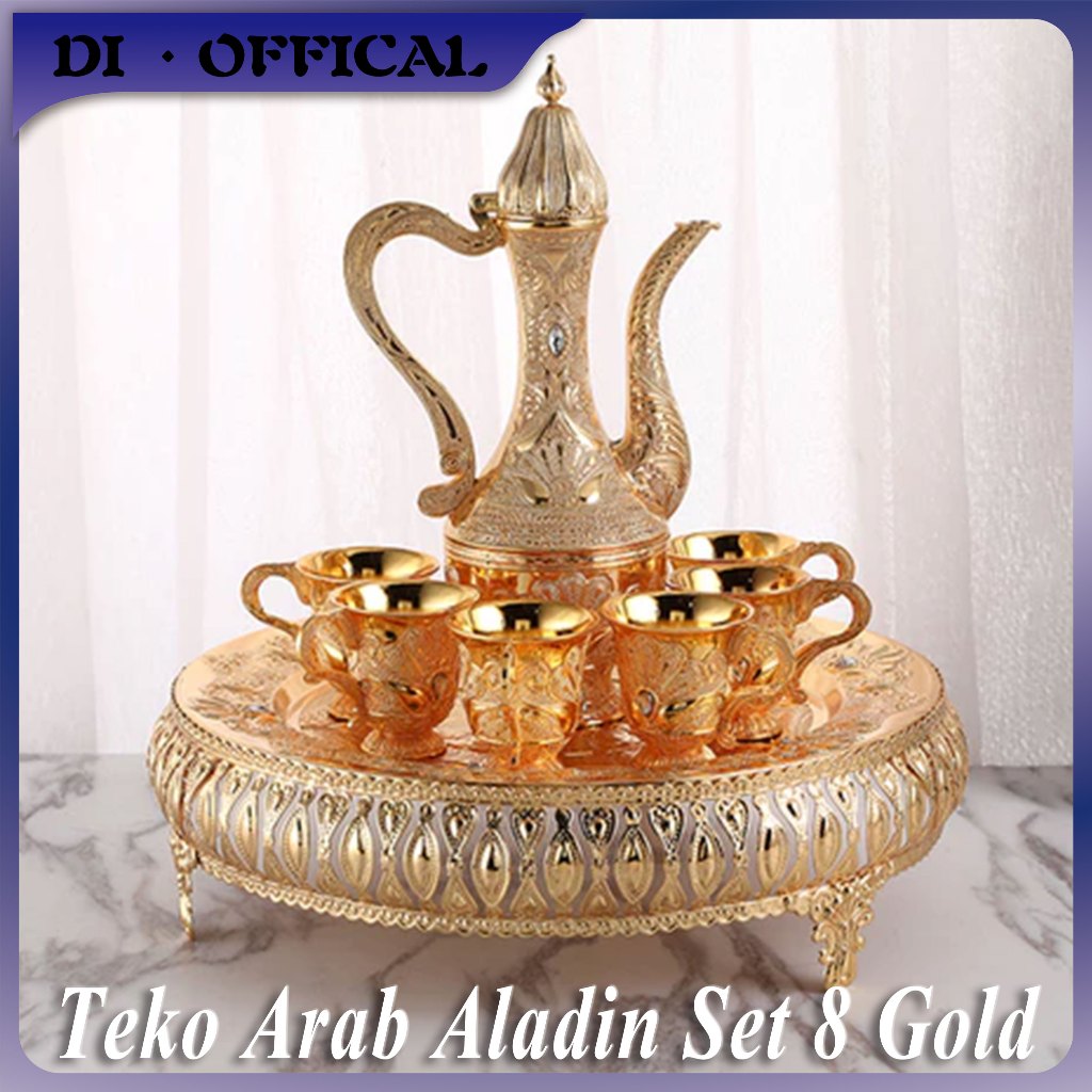Teko Arab Aladin Set 8 Gold Warna Emas Ornament/set Gelas Anggur Kendi