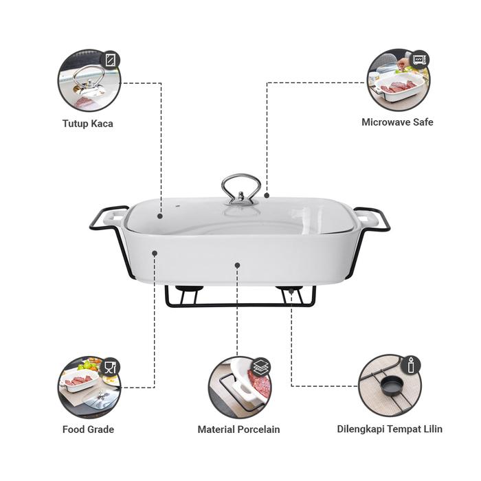 INFORMA APPETITE 38 CM CASSEROLE PENGHANGAT MAKANAN RECTANGLE WADAH PRASMANAN TEMPAT SAJIAN PEMANAS MAKANAN WADAH LAUK CHAFING DISH