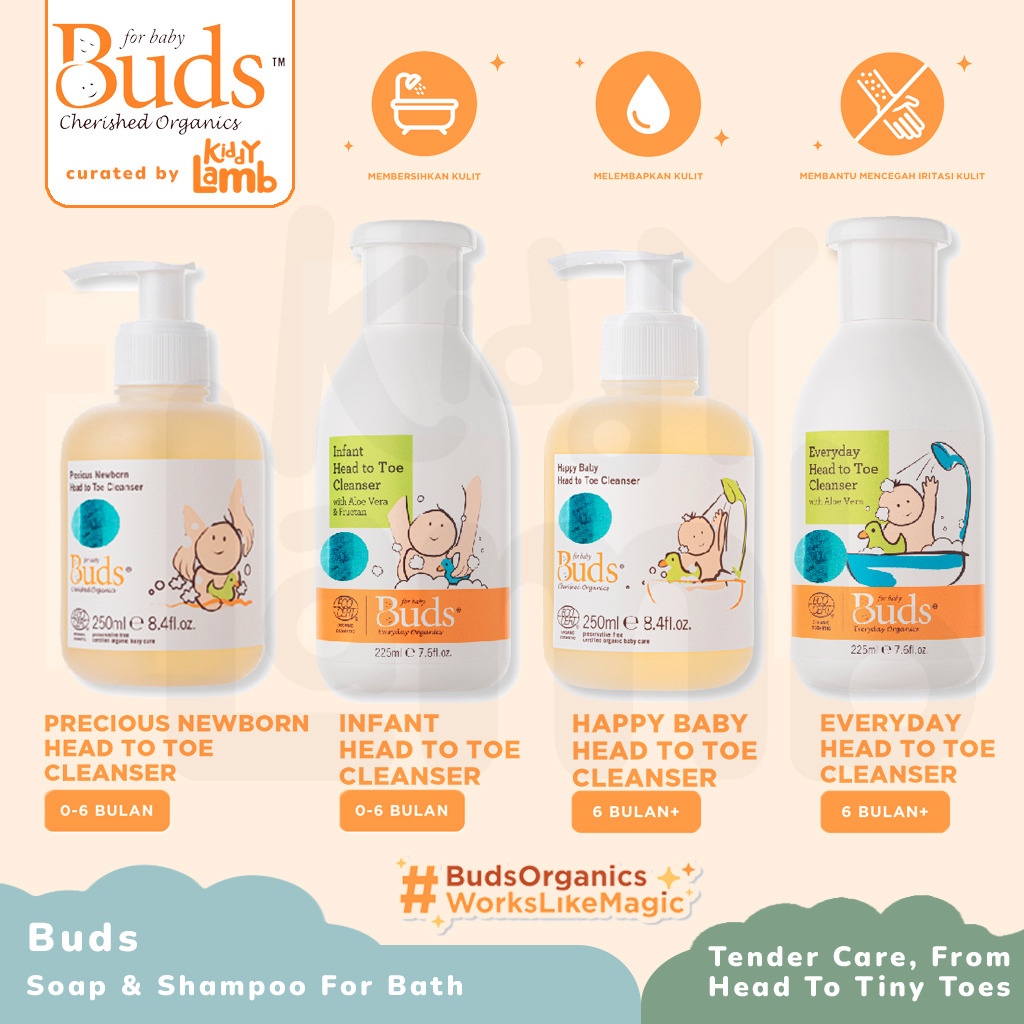 Buds Organics Head To Toe Cleanser Series (Precious Newborn / Happy Baby / Infant / Everyday) / Sabun Sampo Mandi Perawa