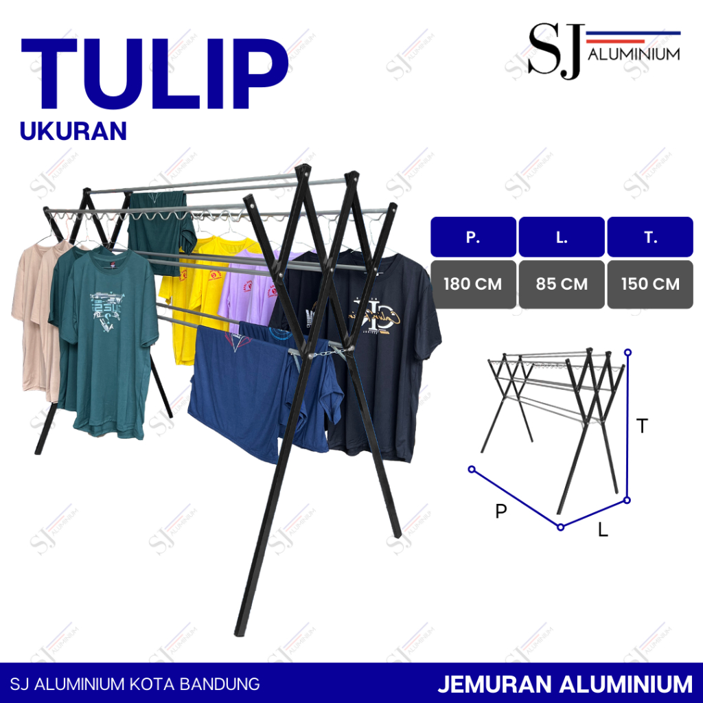 TULIP - Jemuran Aluminium Jumbo 180 CM / Jemuran Pakaian / Jemuran Baju / Rak Handuk - Tahan Beban 20 KG / Warna Hitam -