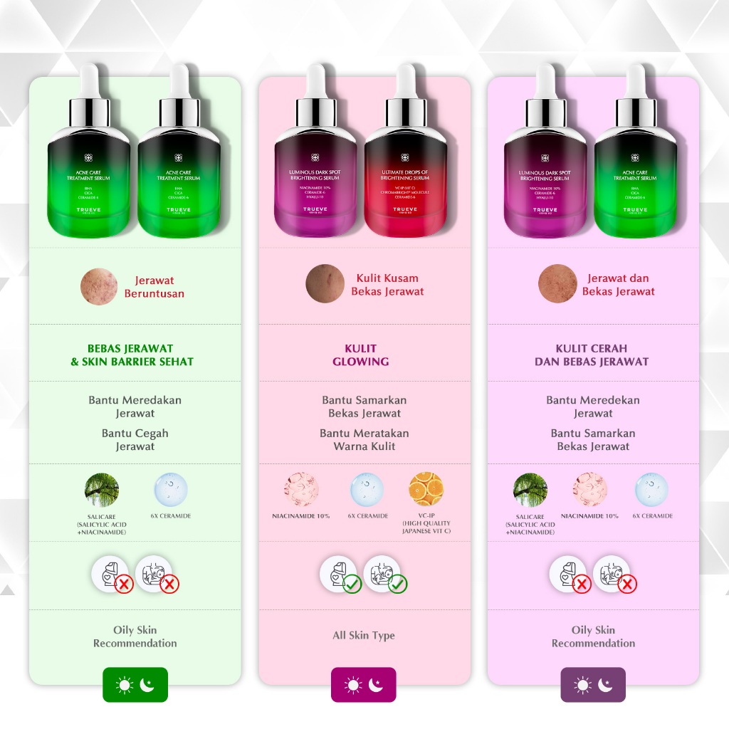 [TWINPACK SERUM 2 PCS] TRUEVE Serum 15ml + Serum 15ml - Best Seller (Niacinamide, Acne, Niacinamax, Youth, Retinol) - Niacinamide 6x Dark Spot Serum, Vitamin C Serum, HPR Retinoid Serum