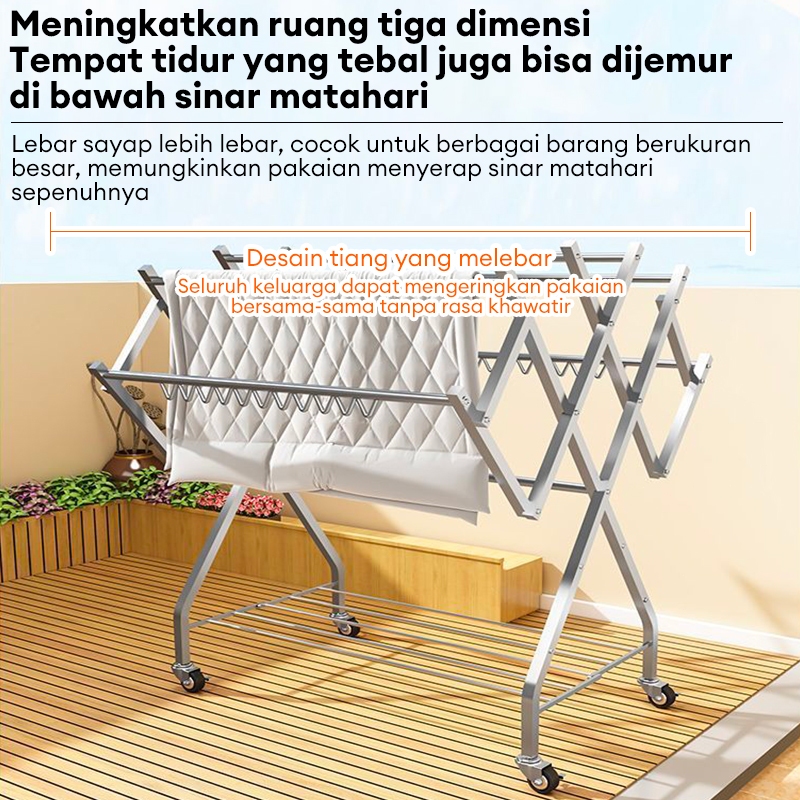 Jemuran Baju Stainless Jumbo Dengan Rak Sepatu Jemuran Baju 160CM Jemuran Pakaian Stainless Kuat