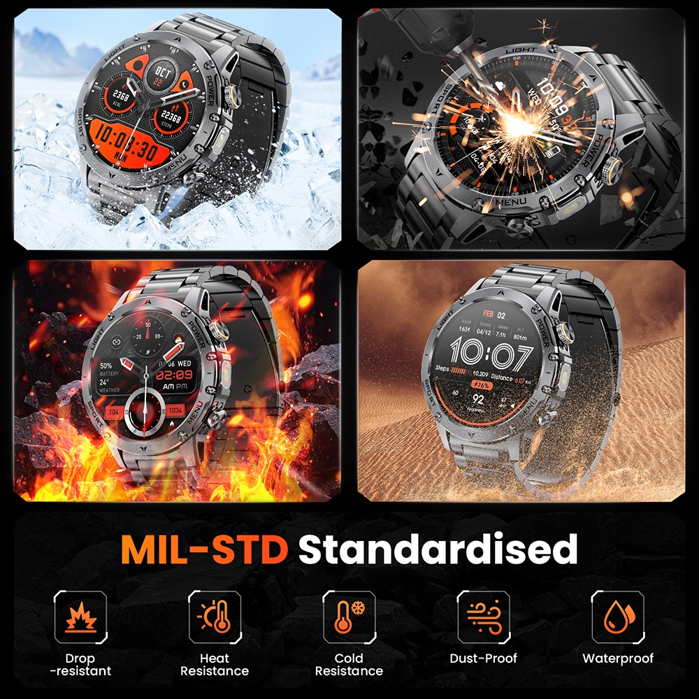 ENC Military Smart Watch for Men, 1,7" HD Touch Screen 1000mAh Large Battery Fitness Watch with Flashlight/Heart Rate Fi