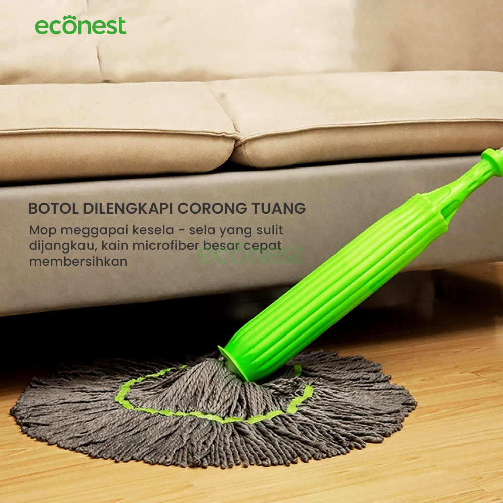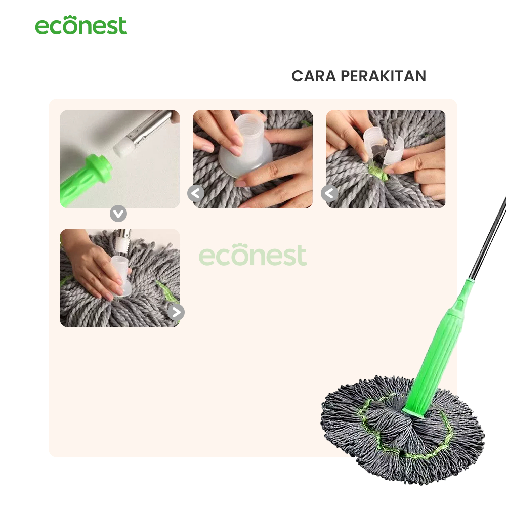 Econest Alat Pel Lantai Twist Mop Kain Pel Microfiber Tarik Peras Otomatis Gagang Stainless Premium