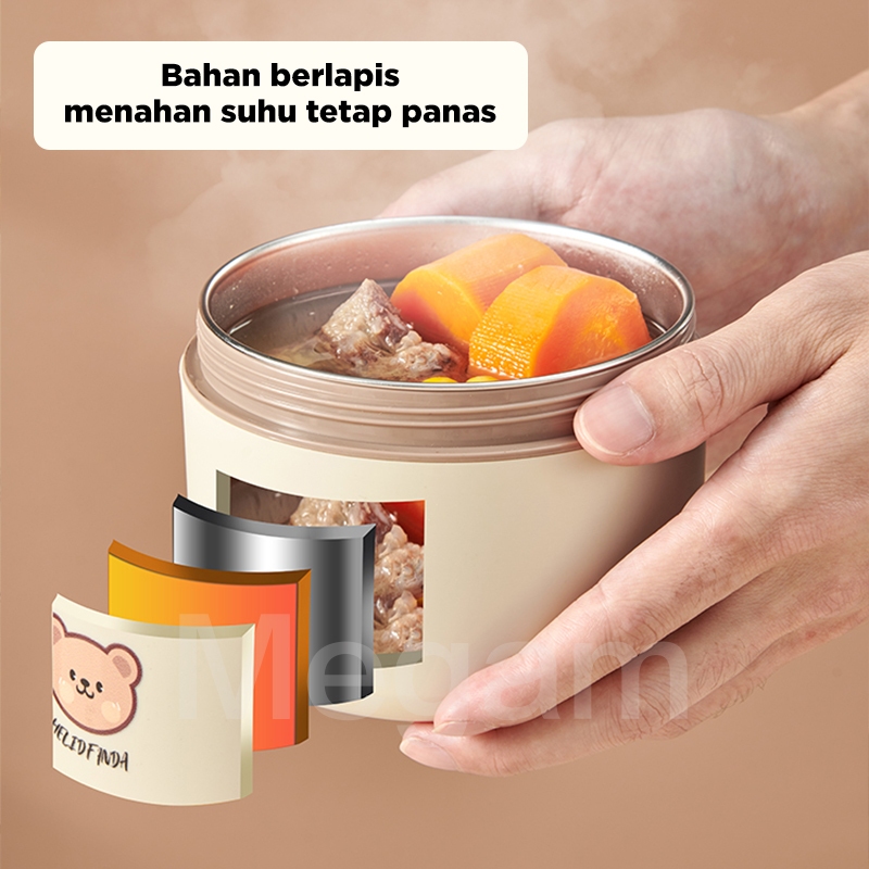 Megam Tempat Bekal Anak Karakter Beruang Lucu Kotak Makan Siang Stainless Steel Tahan Panas + Bag Lunch Box HMB108B