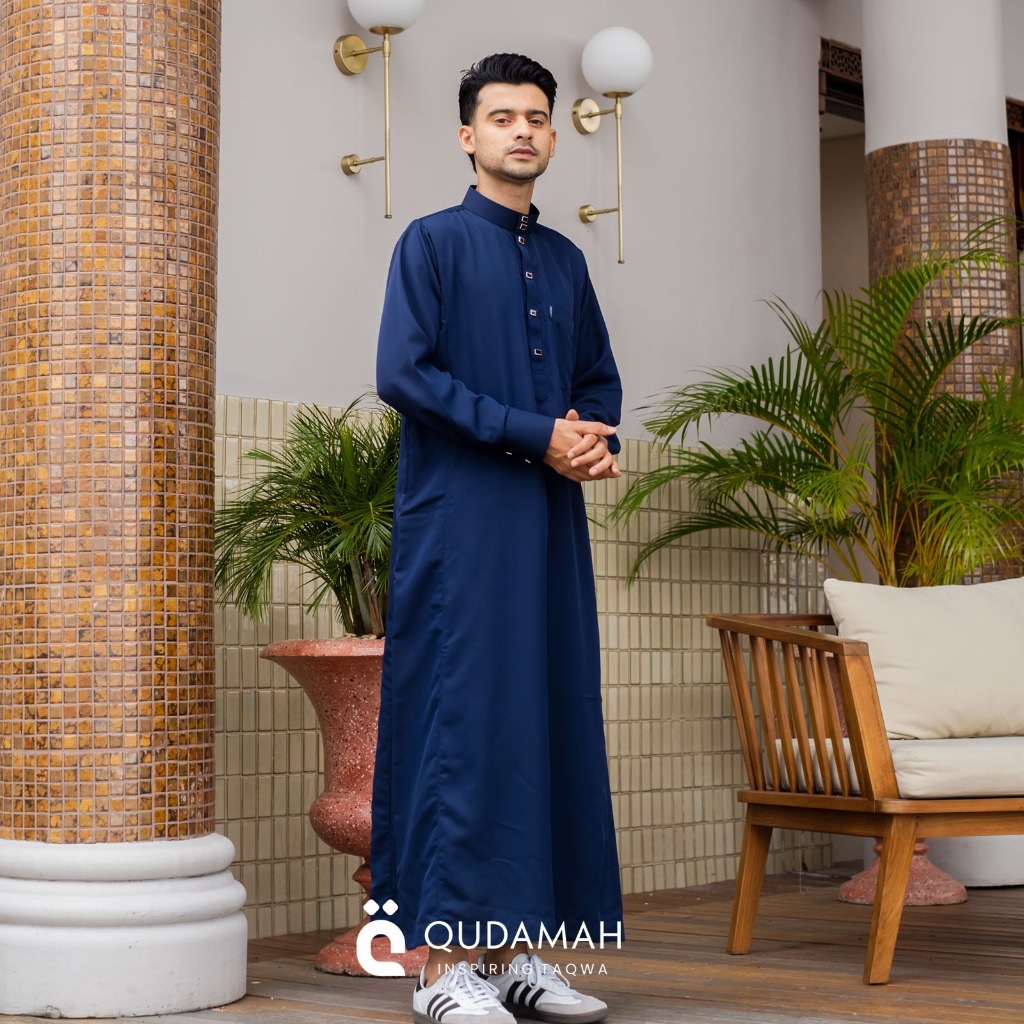 QUDAMAH | Thobe Alfan el Jubah Saudi Lengan Panjang Manset Type Kancing Snap Premium, Kerah Tegak amain Bahan Niagara /