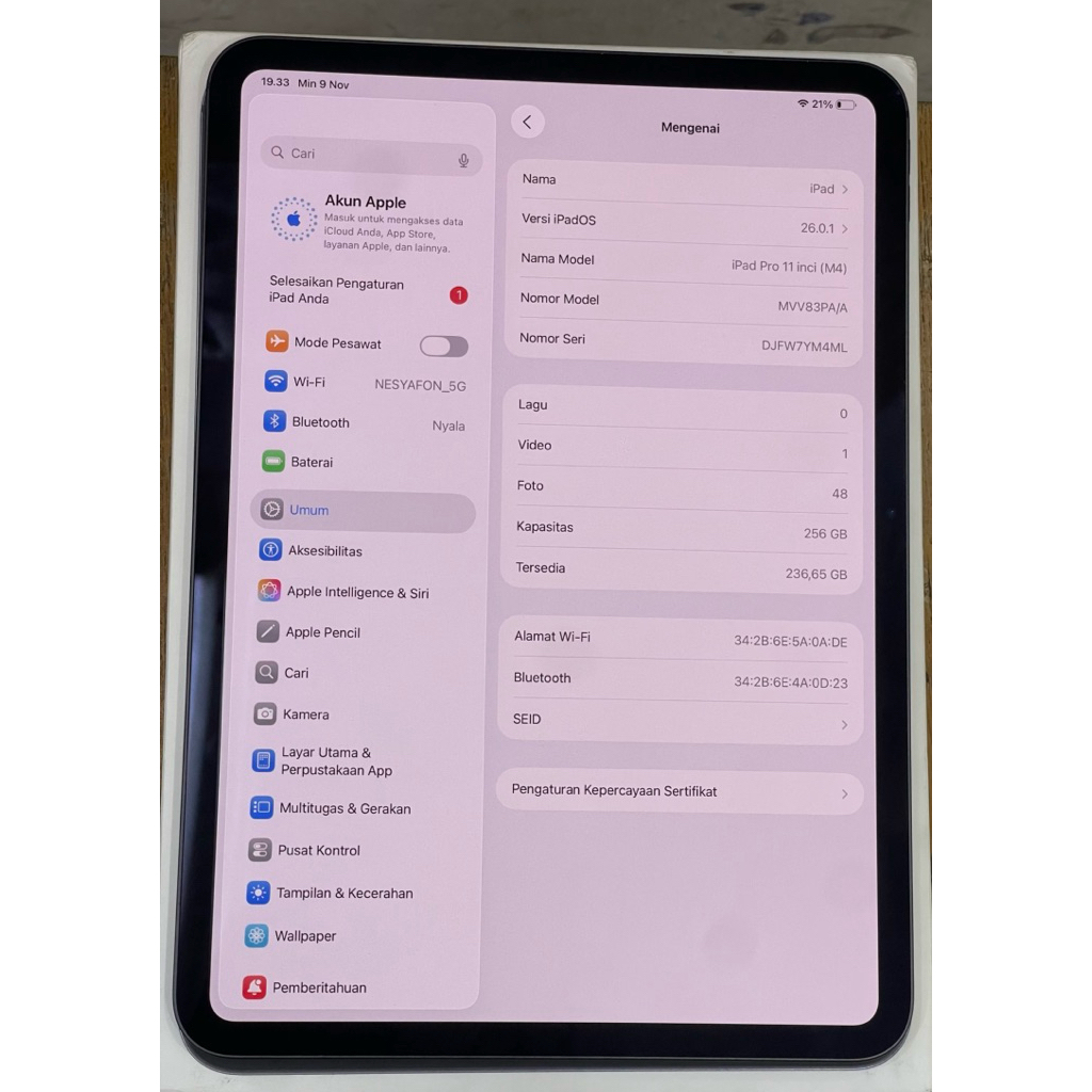 Hp Second iPad Pro M4 11inch IBOX 256GB Wi-Fi Fullset Garansi